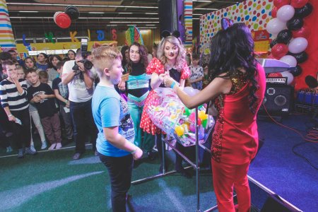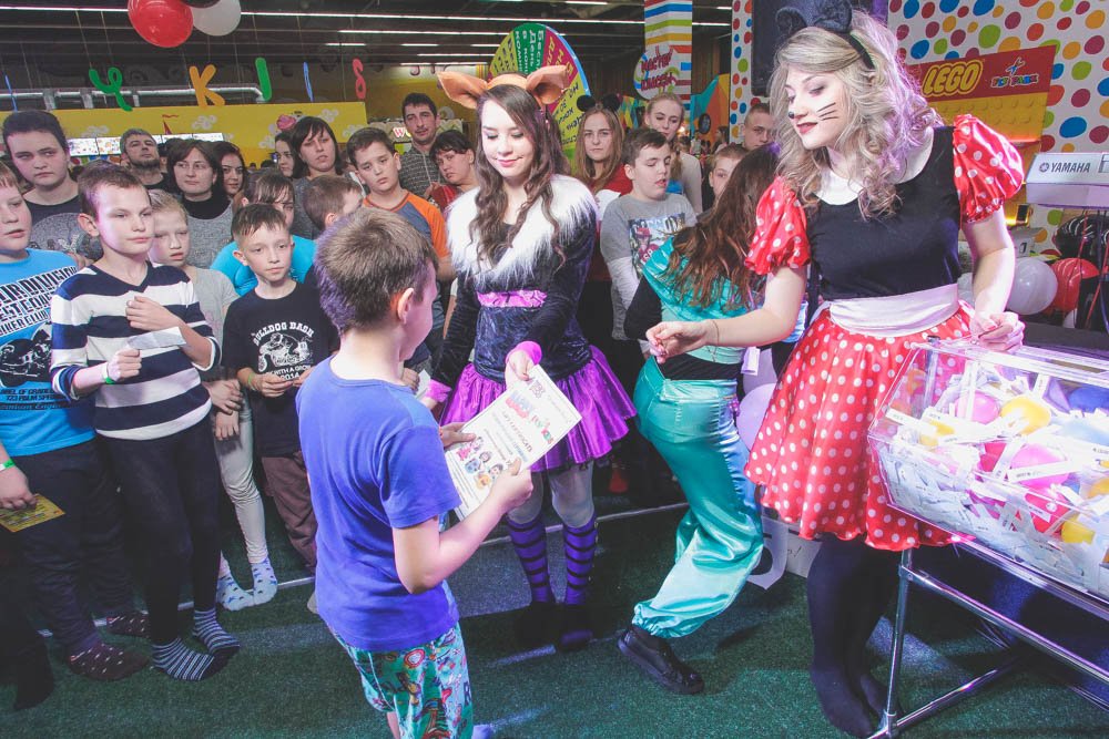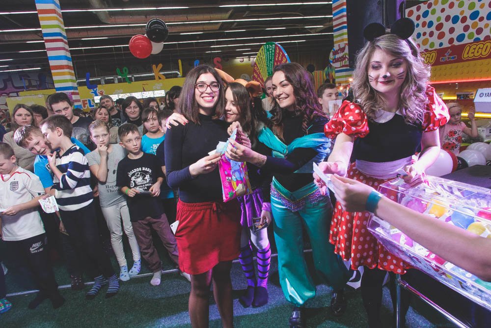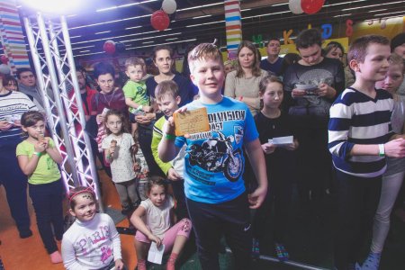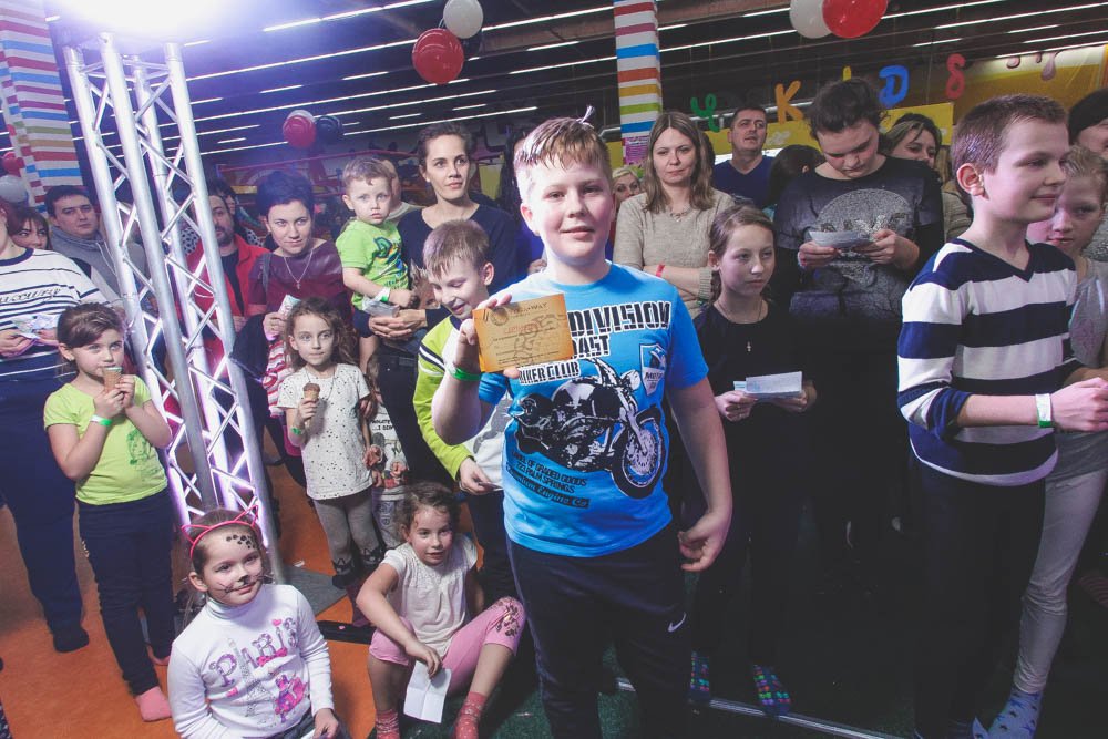Прямо здесь, каждый час разыгрывали призы от партнёров. В розыгрыше могли принять участие все желающие. Для это нужно было приобрести лотерейный билет от заведения и бросить его в лототрон. В момент розыгрыша к сцене сбегались мальчишки и девчонки со всех игровых зон.