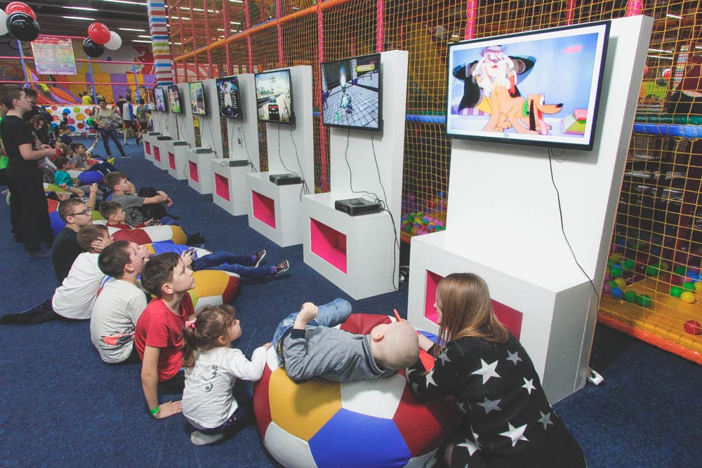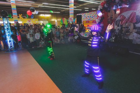 В перерывах между аттракционами дети могли и потанцевать с весёлыми аниматорами, и сделать селфи в праздничной фотозоне, и подкрепиться вкусными десертами в кафе заведения.