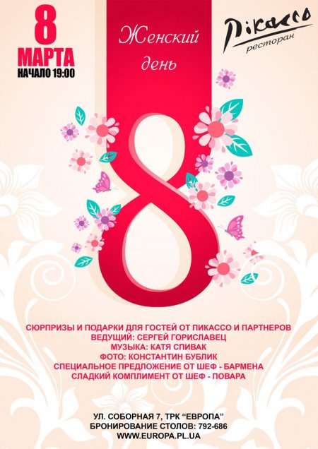 ТРК Европа приглашает отметить праздник 8 Марта в одном из своих ресторанов