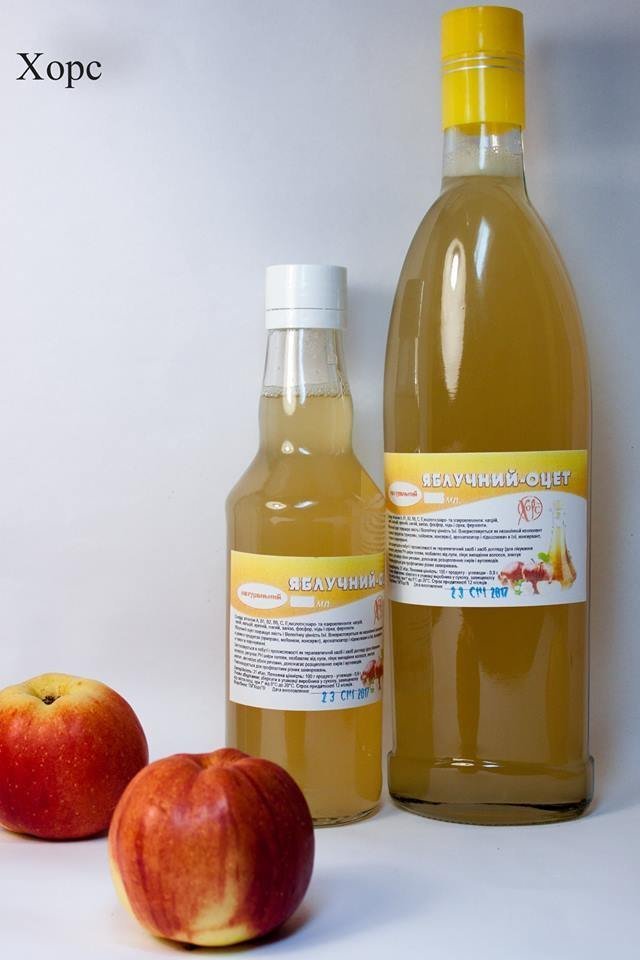 Натуральный, 100% яблочный уксус, произведен по классическому рецепту. Объемом 250 мл и 500 мл.