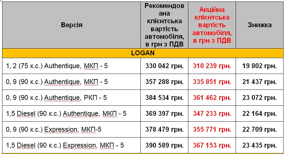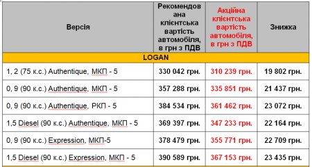 Весняні знижки також діють на легендарні моделі Renault - Logan, Logan MCV, Sandero і SanderoStepway в розмірі 6% (на автомобілі 2017 року виробництва).