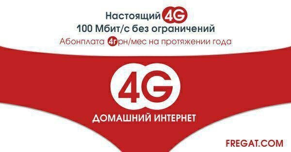 Подключаясь на “4G”, на протяжении года Ваша абонплата составит всего 4 грн в месяц за 100 Мбит/с качественного скоростного интернета, без ограниченией и скрытых условий.
