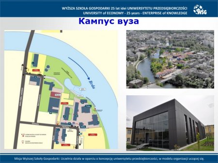 Wyzsza Skola Gospodarki w Bydgoszczy (Університет Економіки в Бидгощі) є найбільшим приватним закладом вищої освіти в північній частині Польщі.