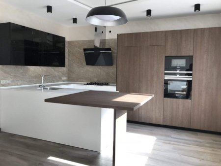 На фото Вы видите одну из наших работ, которая с эстетической точки зрения мне кажется прекрасной. Но главное, что на приготовление с ней у Заказчицы будет уходить меньше времени и сил, благодаря тому, что последовательность расположения функциональных зон соответствует логике перемещений во время приготовления еды. Кроме того, во время самого приготовления ей не придётся сгибаться над столешницей, потому что её высота рассчитана на основании высоты локтя. А о высоком качестве самой мебели говорит 20-ти летняя гарантия на все механизмы.
