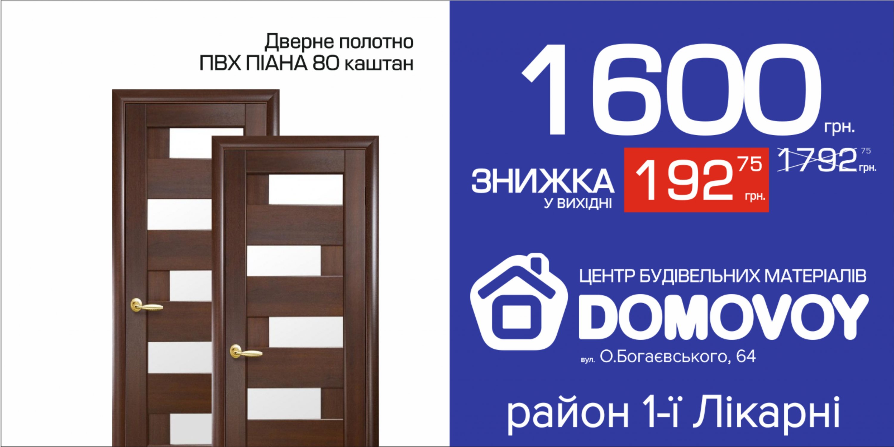 КУПУЙ з вигодою 192 гривні Дверне полотно ПВХ ПIАНА 80 каштан