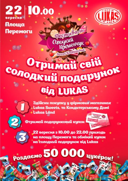 22 вересня компания “Лукас” на фестивалі «Солодкий Кременчук» подарує 50 000 цукерок мешканцям міста!