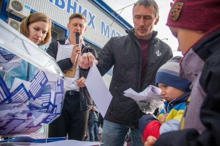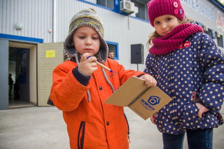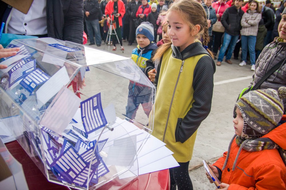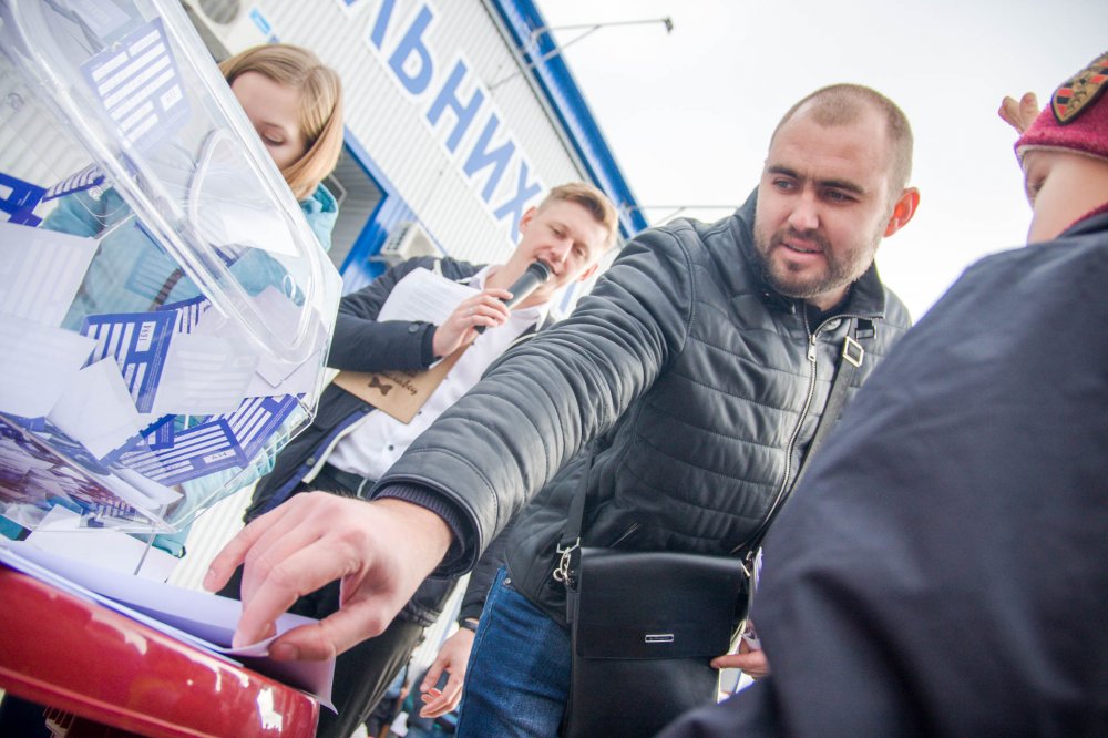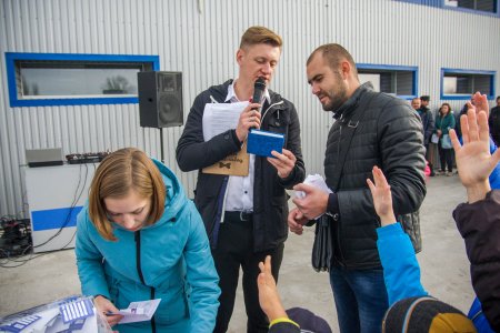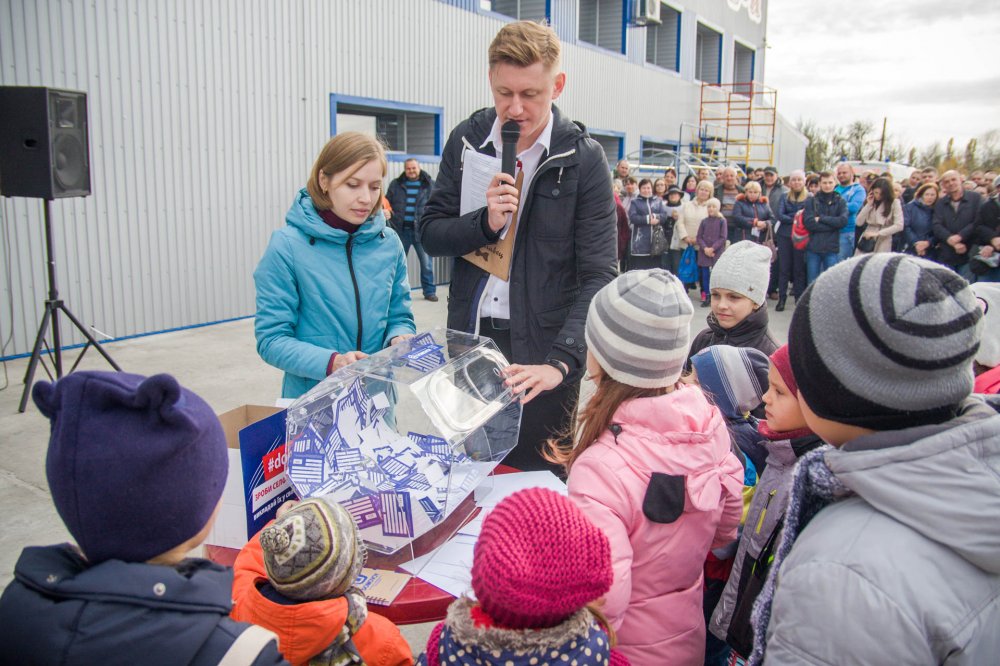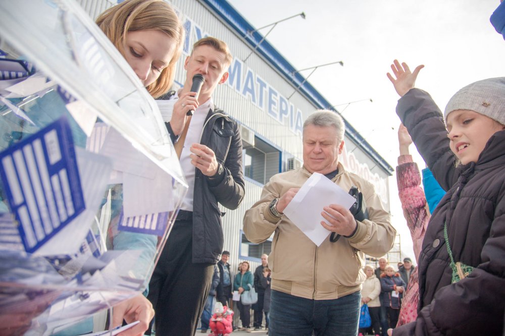 Сам розыгрыш начался в 14:30, когда эйфория от ожидания награждения уже вовсю царила в осеннем воздухе вокруг. Ведущий огласил официальные правила и пригласил самых маленьких гостей помочь в честном выборе победителей.
