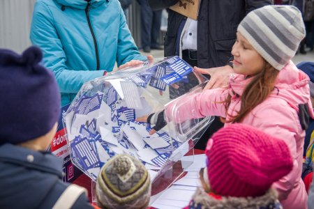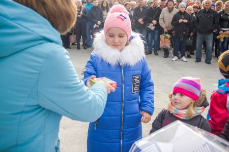 Все отрывные купоны были помещены в барабан, который крутили дети. Каждый раз один из малышей вытягивал случайный купон с именем счастливчиков и получал за это приятный сюрприз от «Домового».