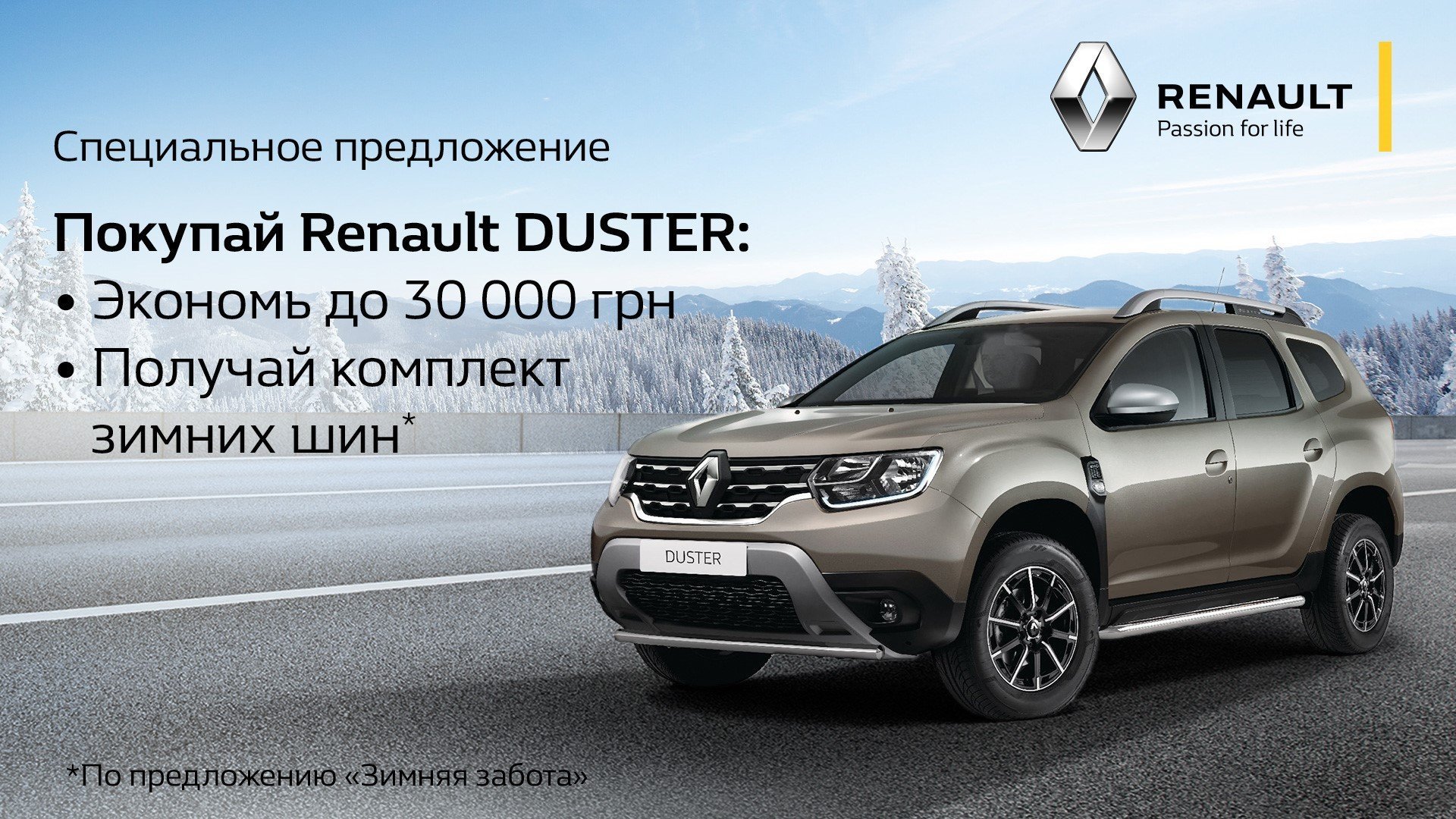Таким образом, покупая Renault Duster в феврале можно сэкономить до 30 000 грн, а также получить комплект качественных зимних шин в подарок. Общая экономия составляет до 45 000 грн.