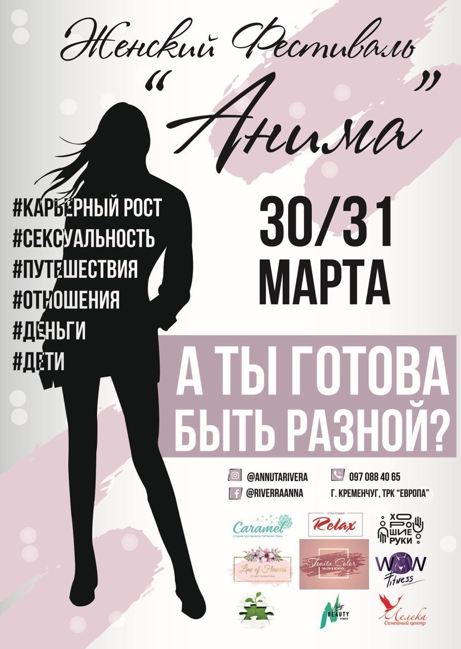 30 и 31 марта состоится всеукраинский ФЕСТИВАЛЬ АНИМА 2019 – событие, которое вдохновит и изменит каждую женщину.