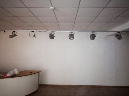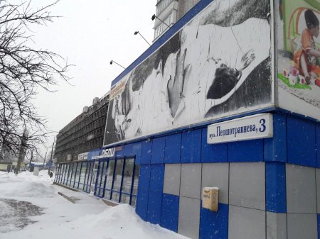 Окна помещения выходят на Парк Юбилейный, хотя сегодня они закрыты снаружи бордом, а внутри помещения закрыты гипсокартоном. При прошлом использовании магазина (тут долгое время находился магазин детских вещей «Chicco»), скорее всего, это было необходимо для правильного освещения товара. Хотя сегодняшние фасадные системы могут превратить это помещение в очень светлый и красивый объект.