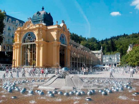 Карловы Вары славятся своими горячими природными источниками (температура воды от 40 до 73,4С), состав воды которых уникален, а также грязями и минеральной водой. Название курорта связано с именем императора Карла IV, который, согласно легенде, первым открыл целебную силу источников. Их лечение показано при заболевании желудочно-кишечного тракта, заболеваниях опорно-двигательного аппарата, сахарном диабете. Также можно употреблять эту воду для общего укрепления организма.
