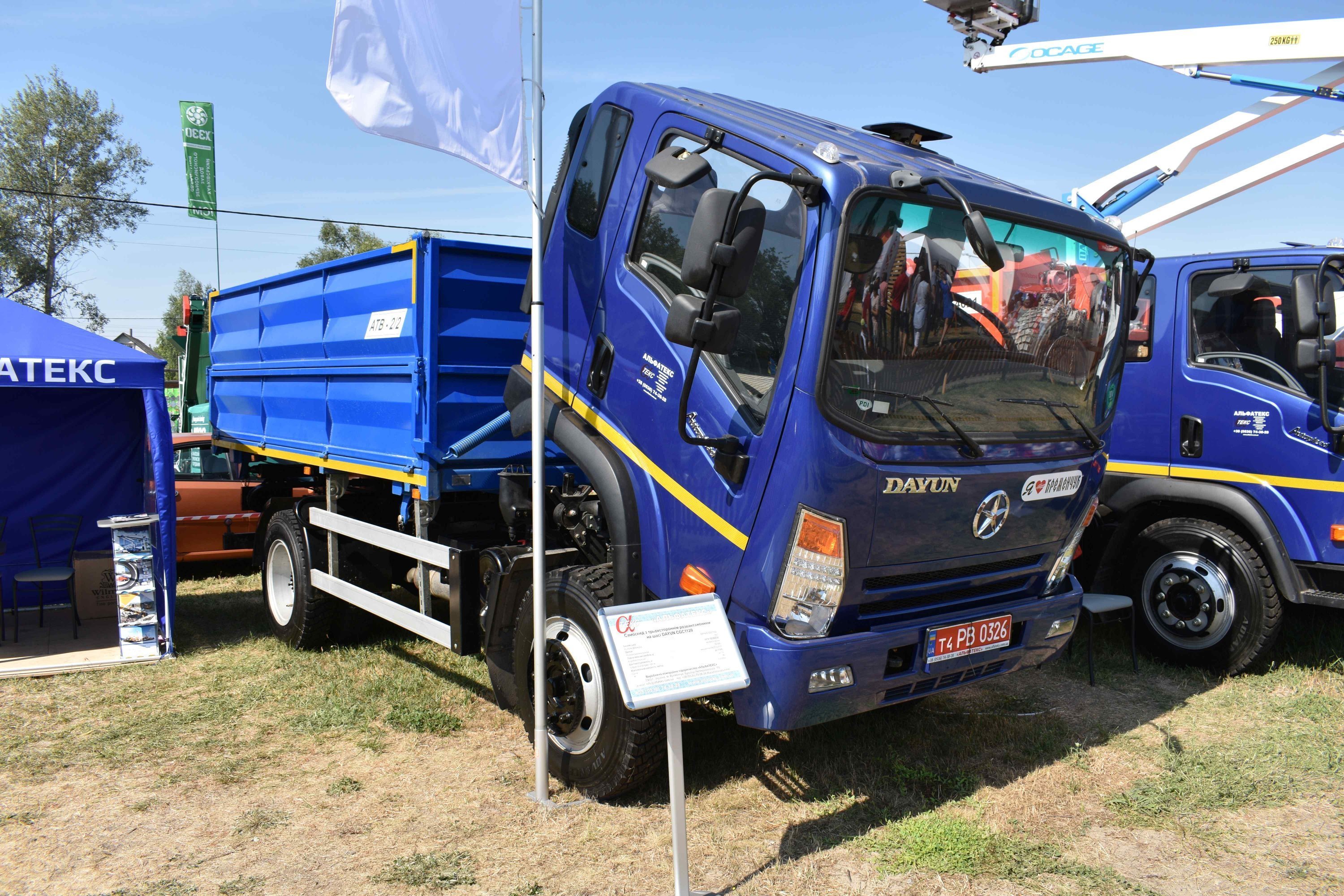 На стенді компанії можна було побачити найрізноманітніші машини. Наприклад, середньотонажні автомобілі китайської марки Dayun, які вперше були показані торік на виставці «КоммунТех-2018» в Києві.
