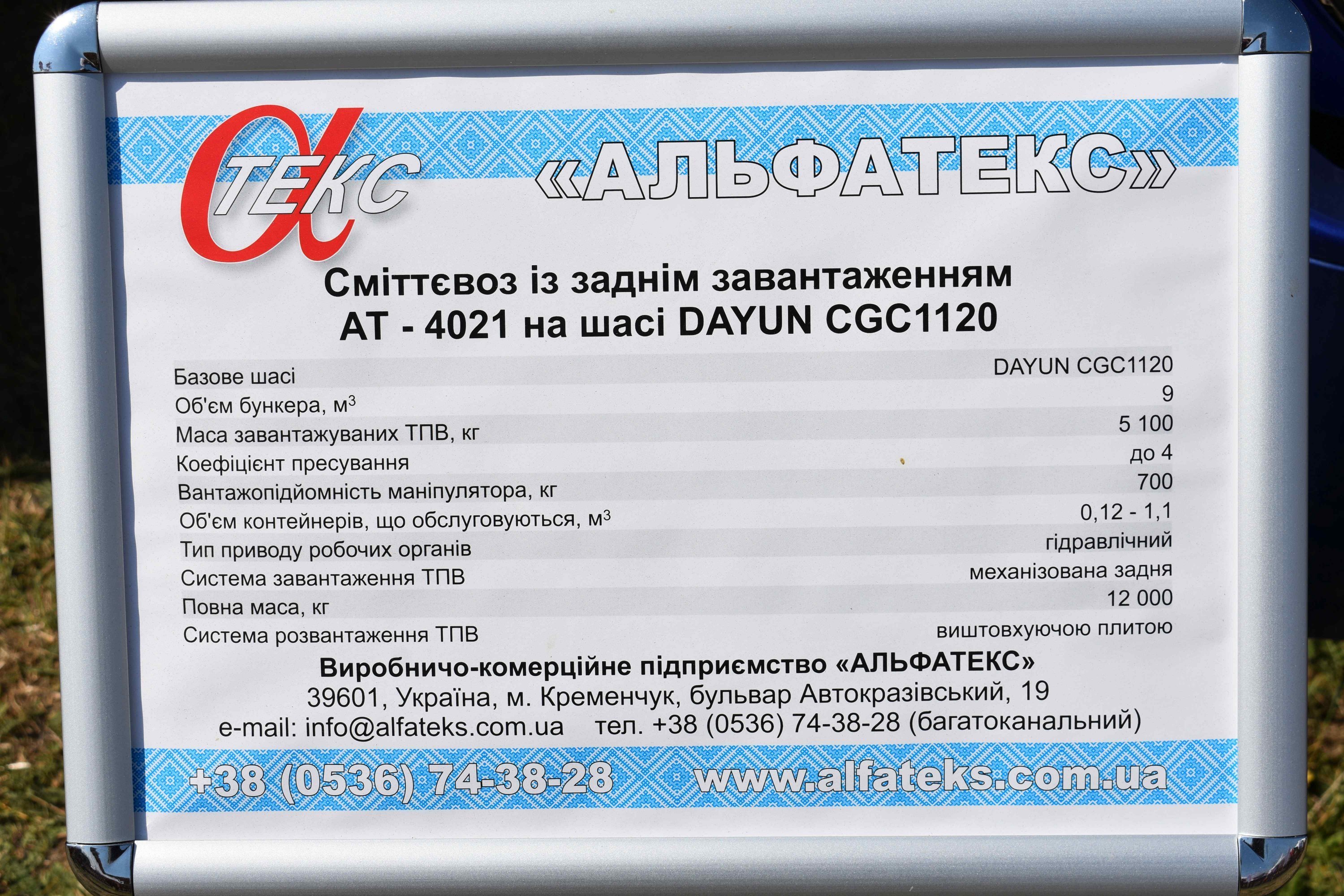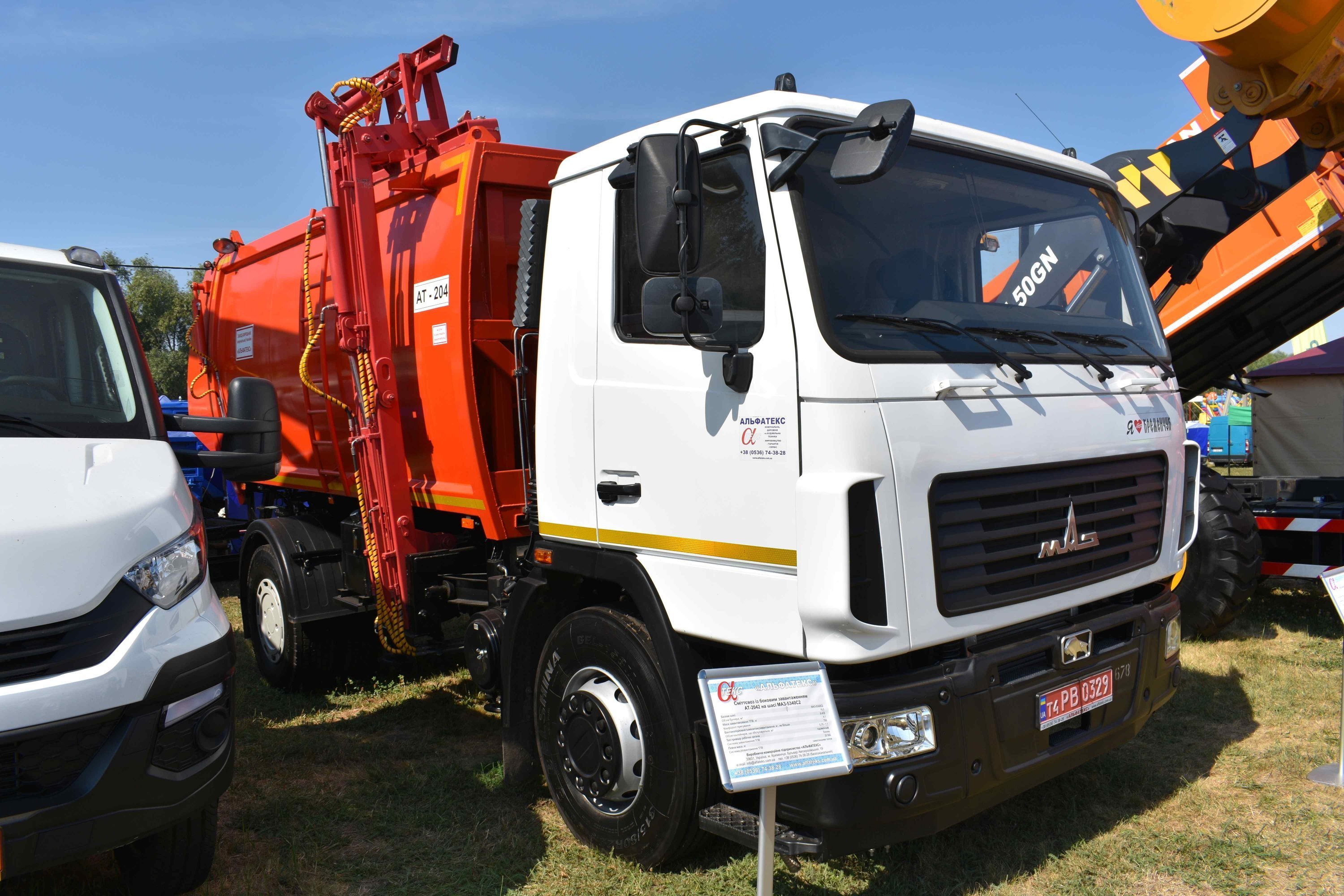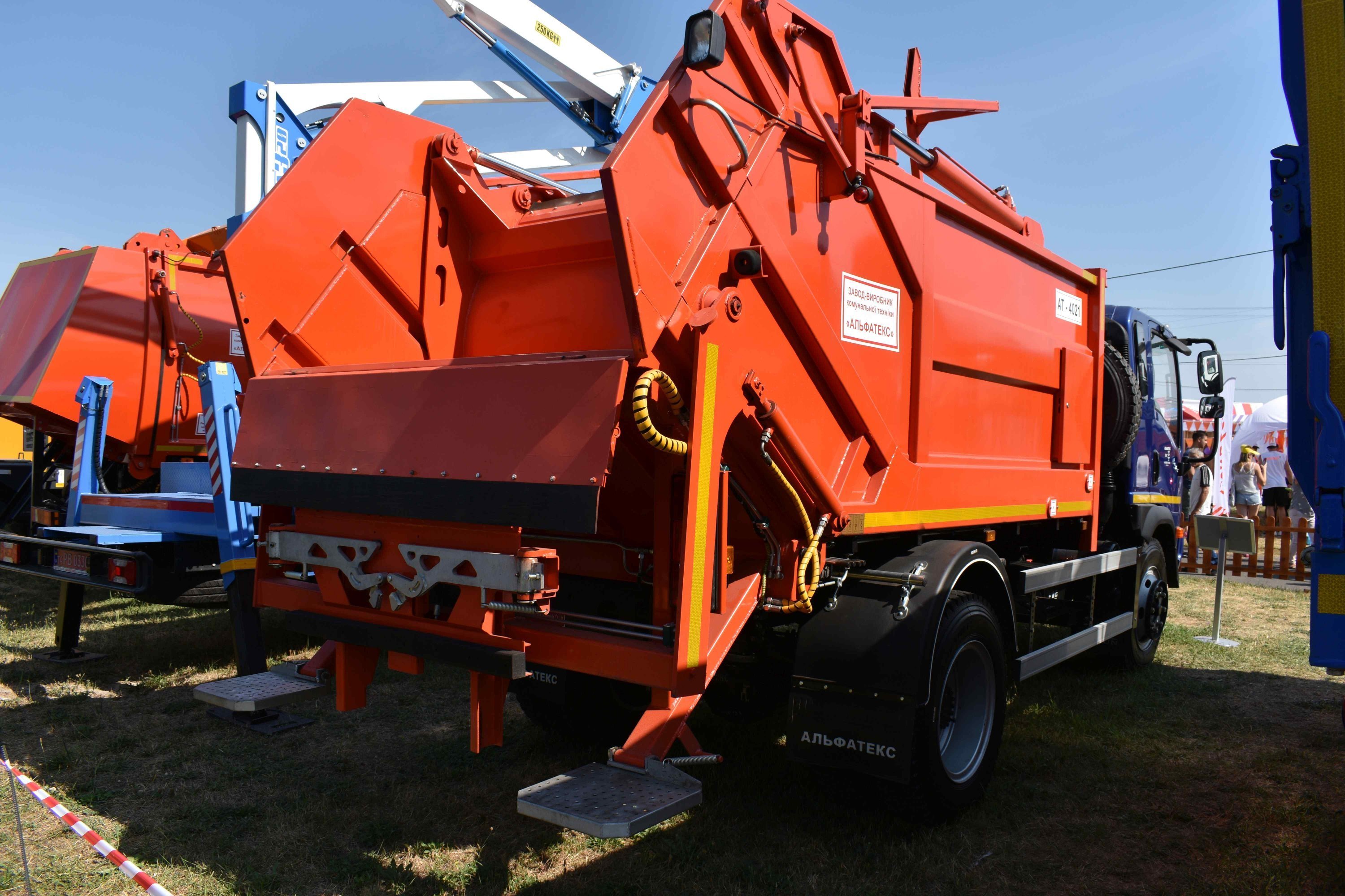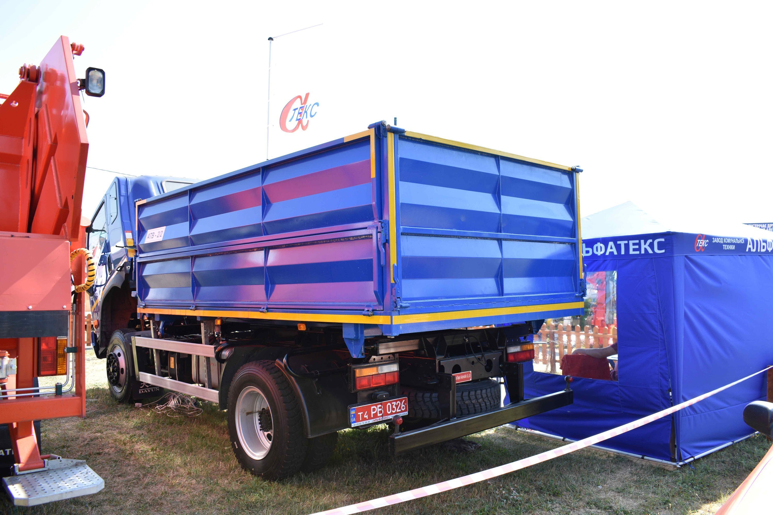 Ці машини укомплектовані двома кузовними надбудовами, виготовленими на «Альфатекс»: самоскидний кузов з тристороннім розвантаженням об’ємом 12 кубометрів та сміттєвоз із заднім завантаженням.