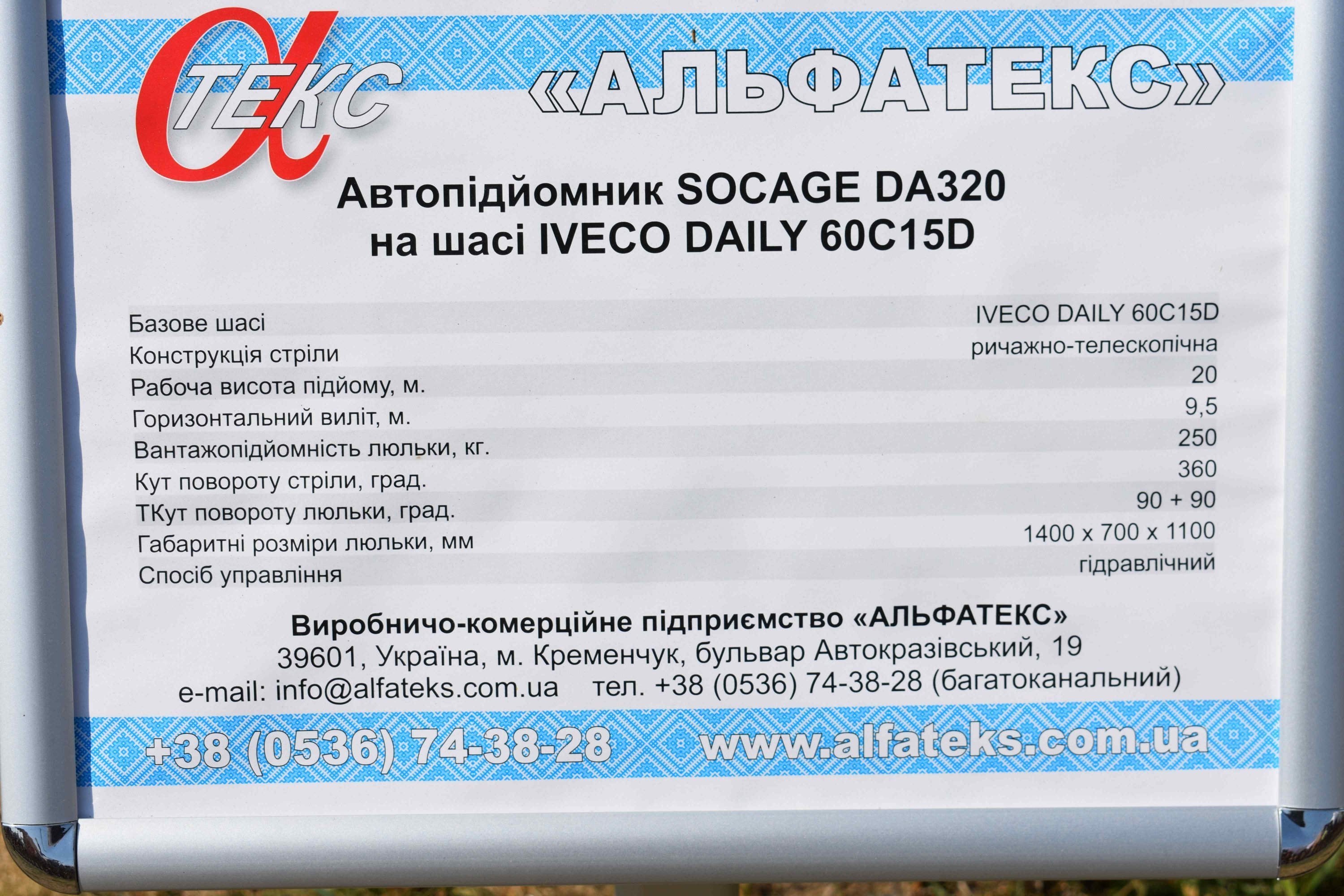 Ще була представлена автовишка Socage на шасі IVCO Daily з дворядною кабіною на 7 місць.