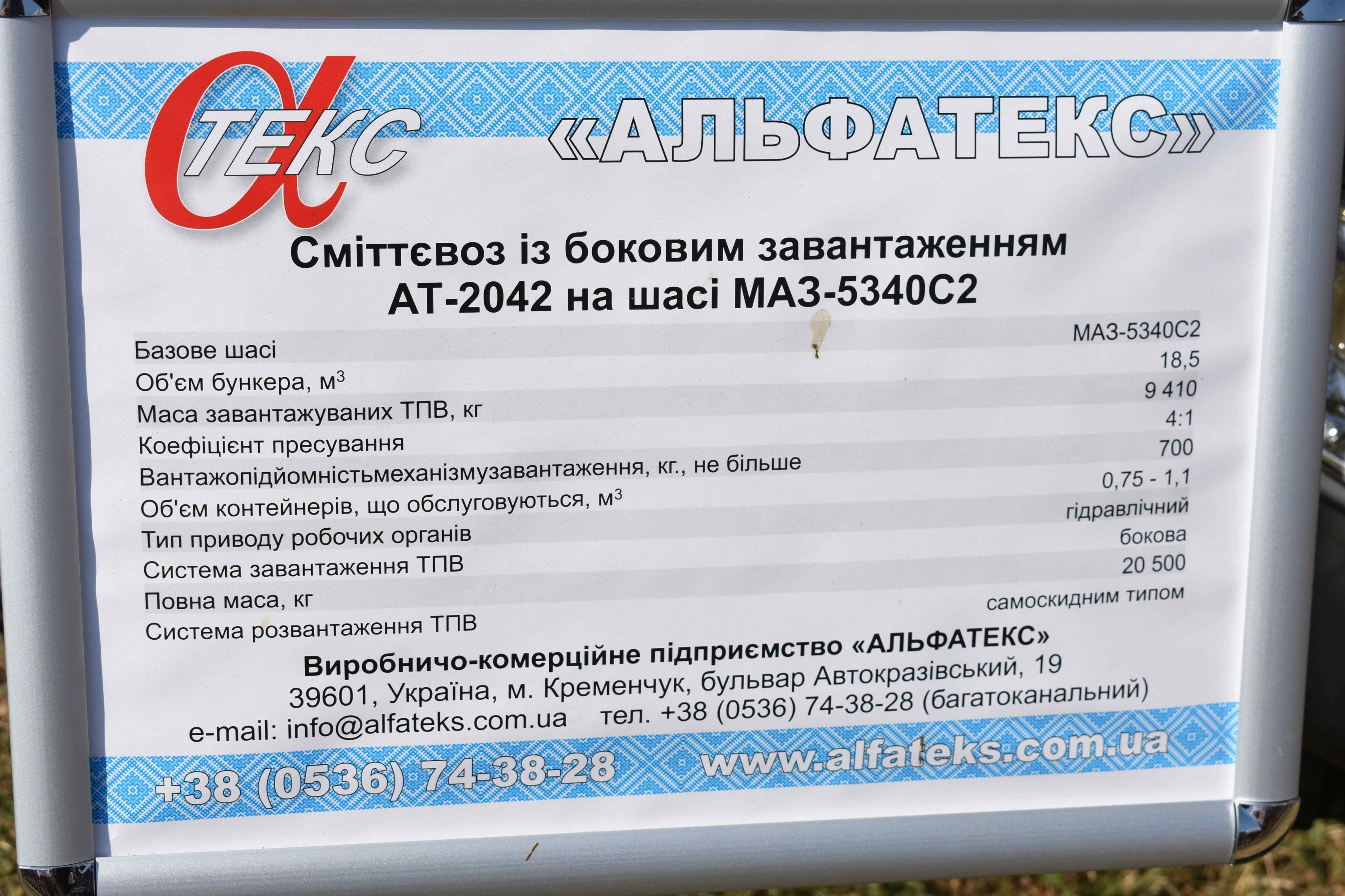 Представили кременчужани ще один сміттєвоз власного виробництва з бічним завантаженням на шасі вантажівки МАЗ.