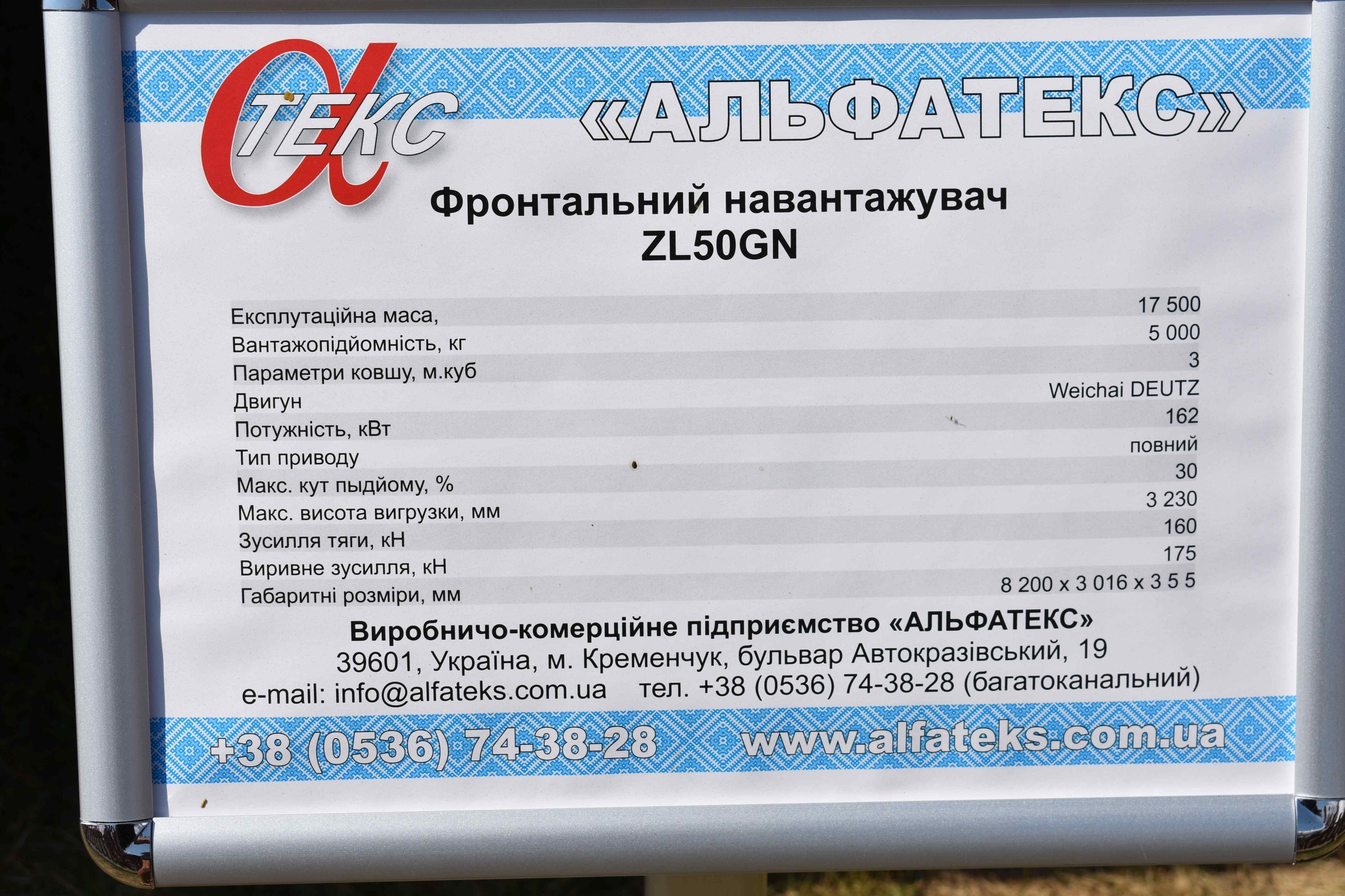 Минулоріч «Альфатекс» став офіційним дилером найбільшого виробника дорожньо-будівельної техніки з Китаю – XCMG. Тож представили на виставці і колісний фронтальний навантажувач XCMG вантажопідйомністю 5 тис кг.