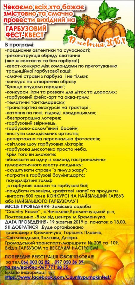 ЯК ДОБРАТИСЯ ДО НАС 19 жовтня НА ГАРБУЗОВИЙ ФЕСТ-КВЕСТ 2019.