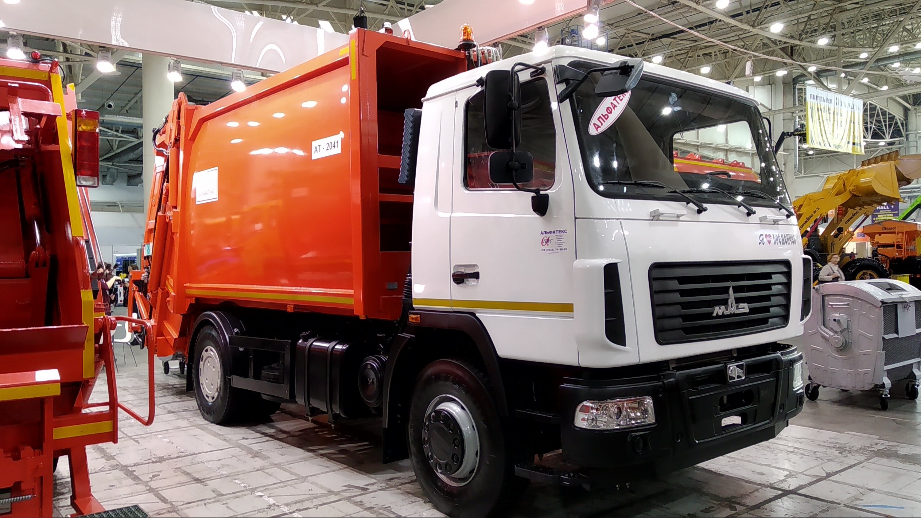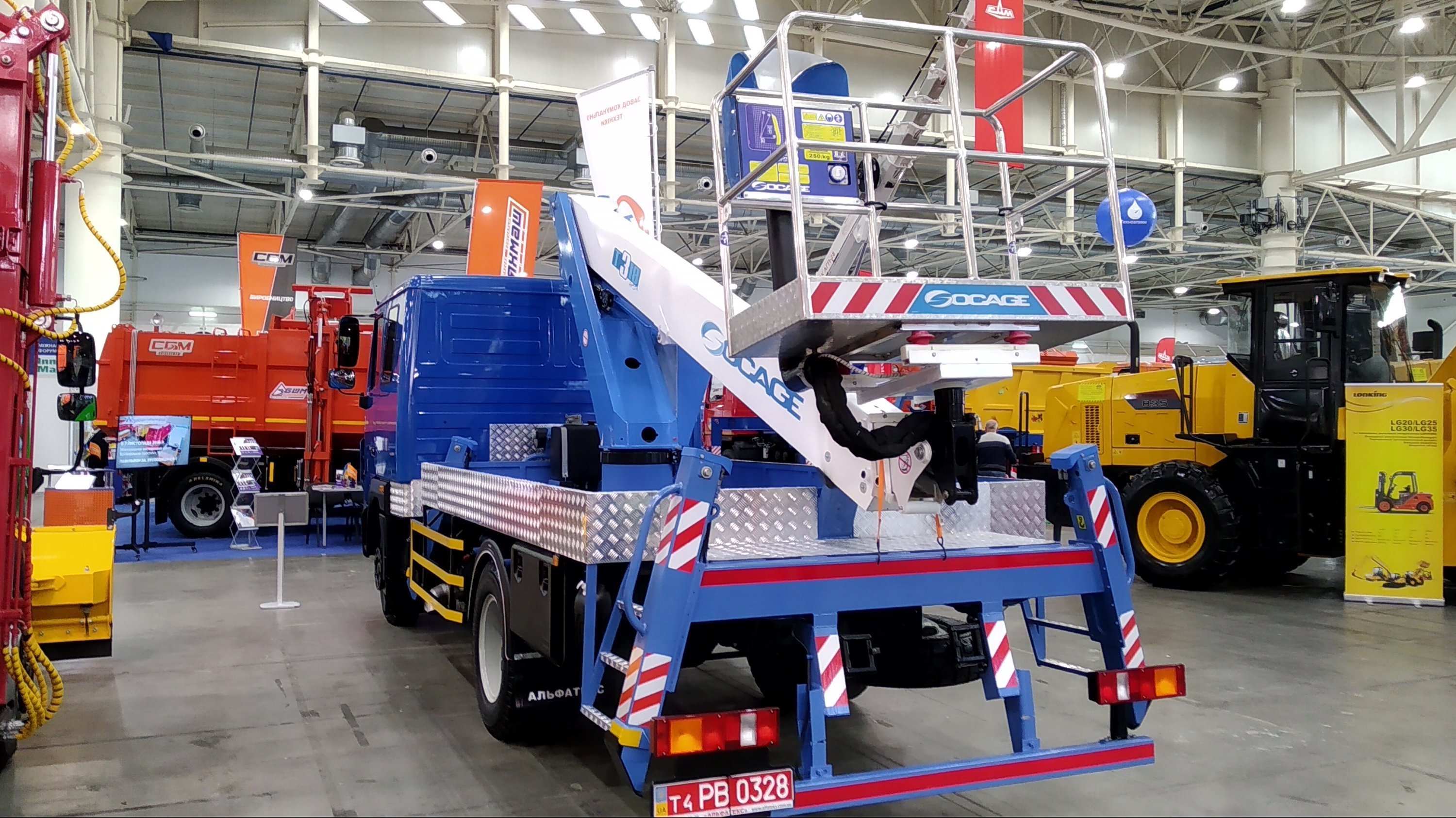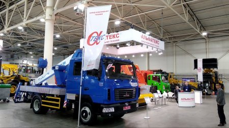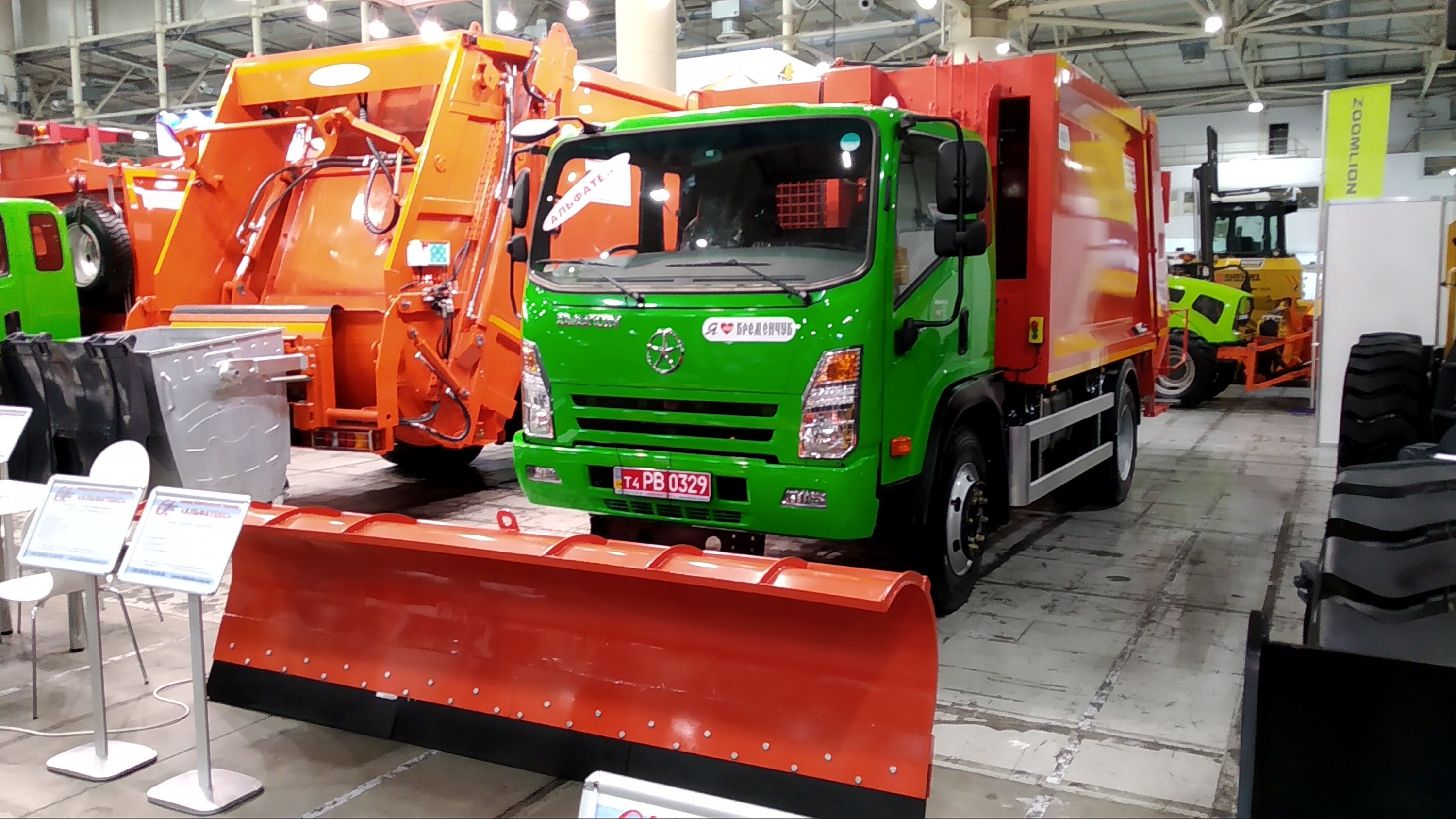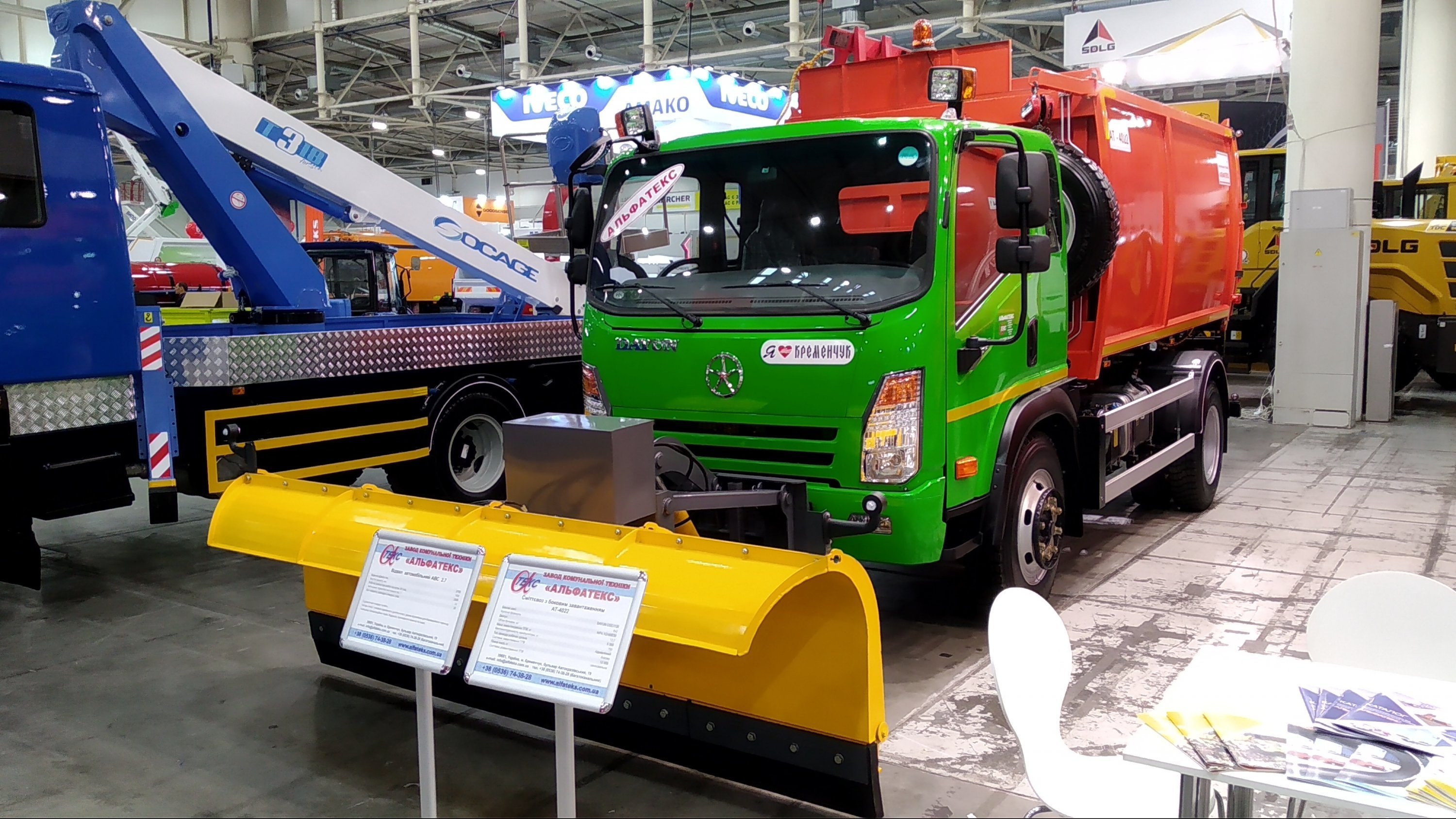 На выставке «Альфатекс» представил 4 машины с надстройками на шасси МАЗ и DАYUN, отвалы и автогрейдер.
