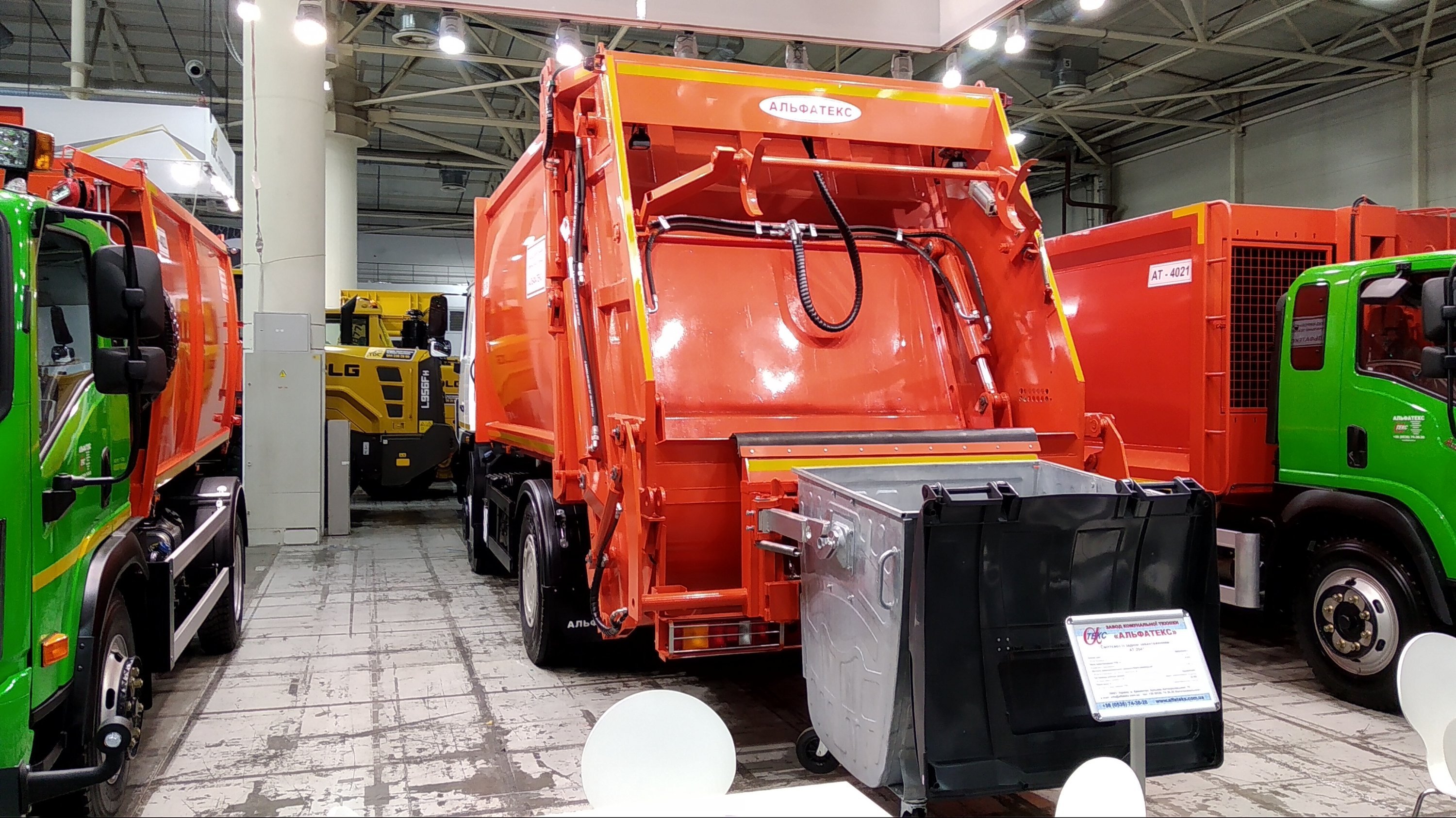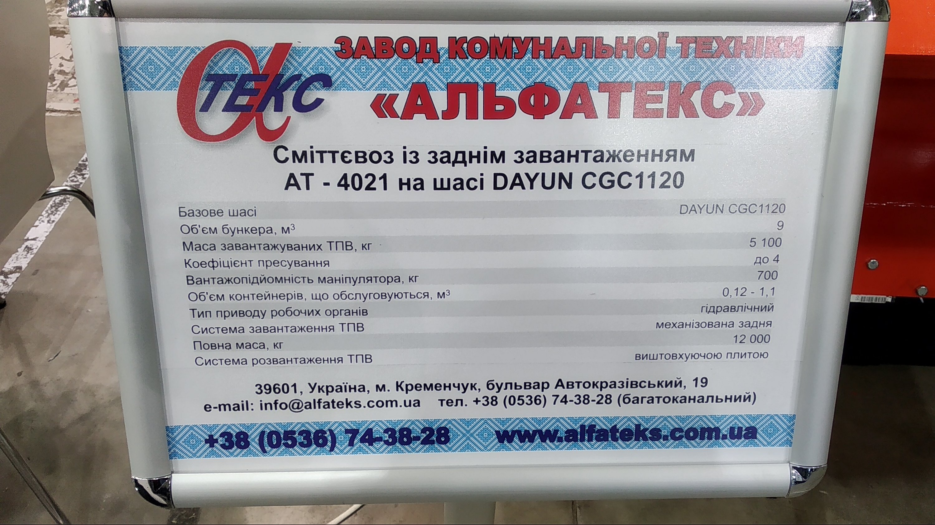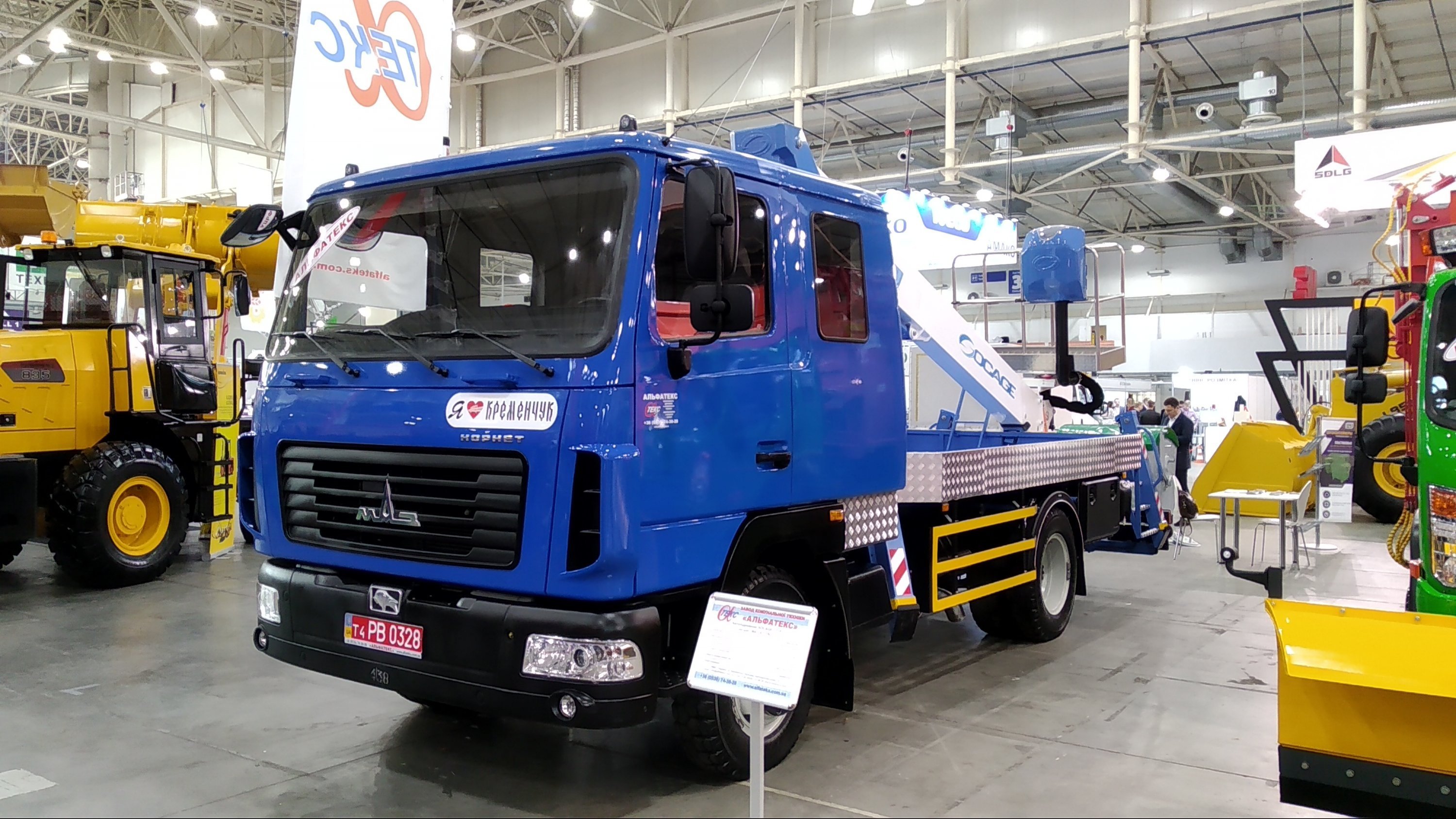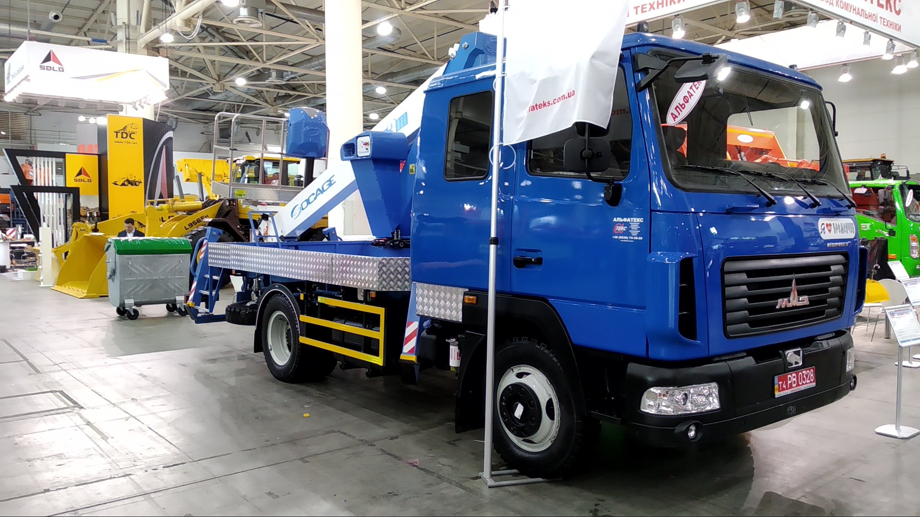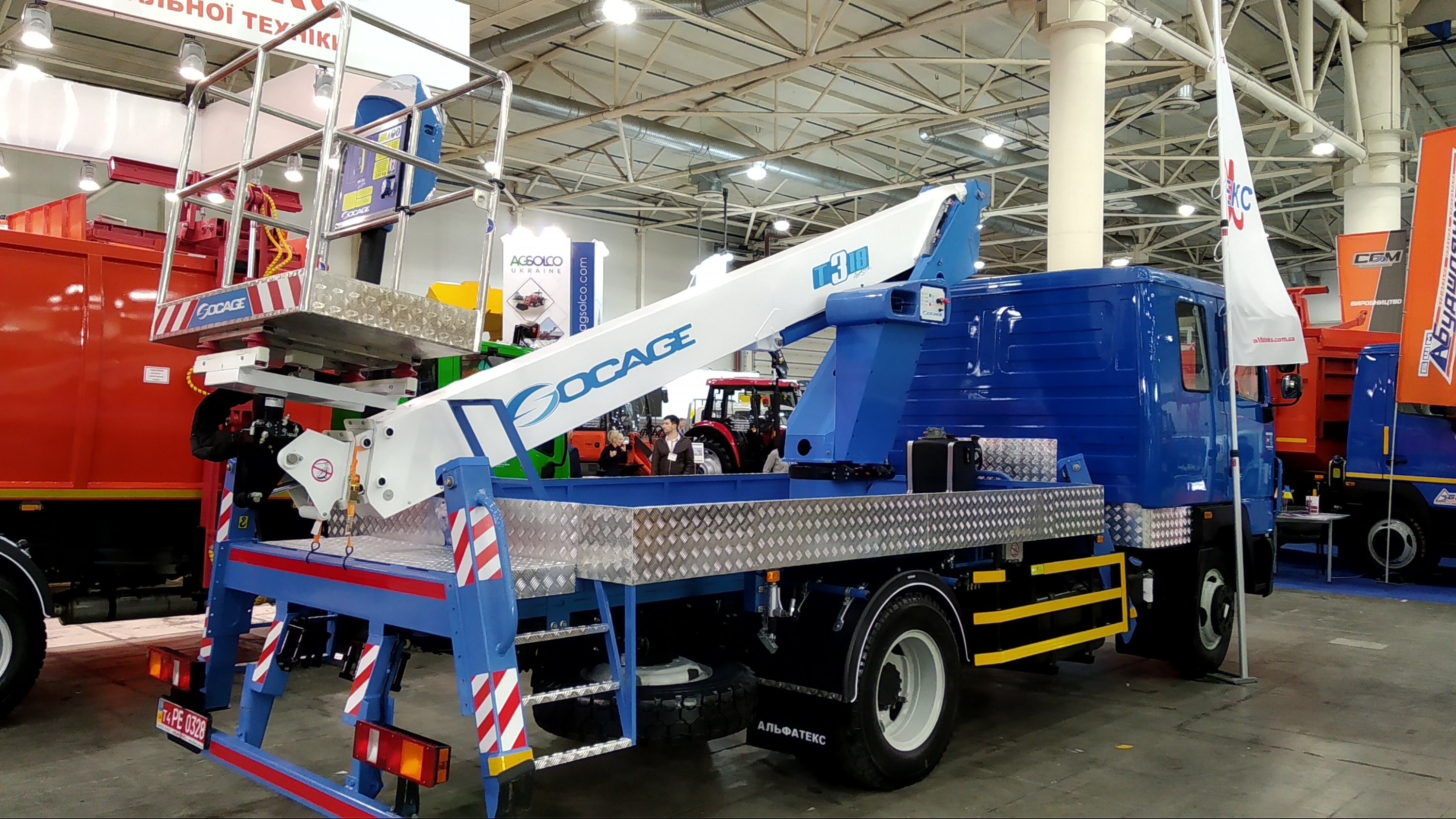На выставке «Альфатекс» представил 4 машины с надстройками на шасси МАЗ и DАYUN, отвалы и автогрейдер.