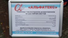 Самосвал Dayun с трёхсторонней разгрузкой рассчитан на грузоподъёмность до 7 тонн и комплектуются 160-сильным дизельным двигателем Weichai стандарта Евро 5, рабочим объемом 4,1 л. Коробка – механическая, 6-скоростная. Эти машины комплектуются с несколькими кузовными надстройками, которые изготавливаются на заводе коммунальной техники «Альфатекс». На «АгроПром-Полтава» «Альфатекс» представил вариант с самосвальным кузовом с трехсторонней разгрузкой полезным объемом 12 кубометров.