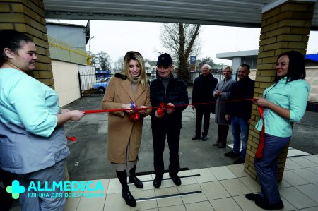 Перерізали стрічку та дали старт до роботи представник ПрАТ КРЕДМАШ Віктор Шибко та власниця медичного закладу Анна Бабенко. Пані Анна, що саме чекає на дитину, перше своє УЗД-обстеження довірила лікарям клініки.