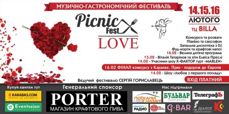 На Picnic Love Fest буде класична схема вечорів для закоханих: фільми та їжа. Романтична трилогія “Любов у великому місті” та величезний вибір смачненького для любителів швидкої їжі.
