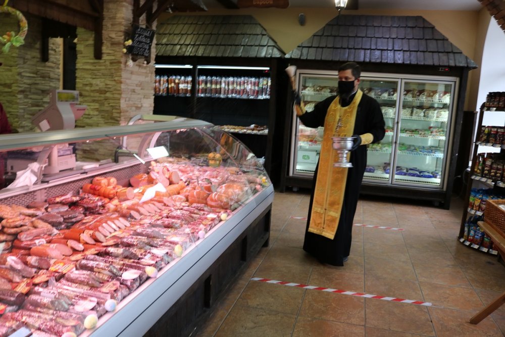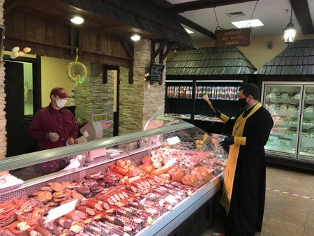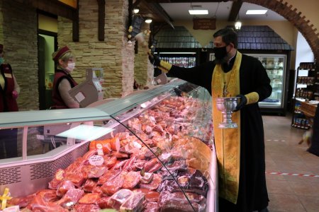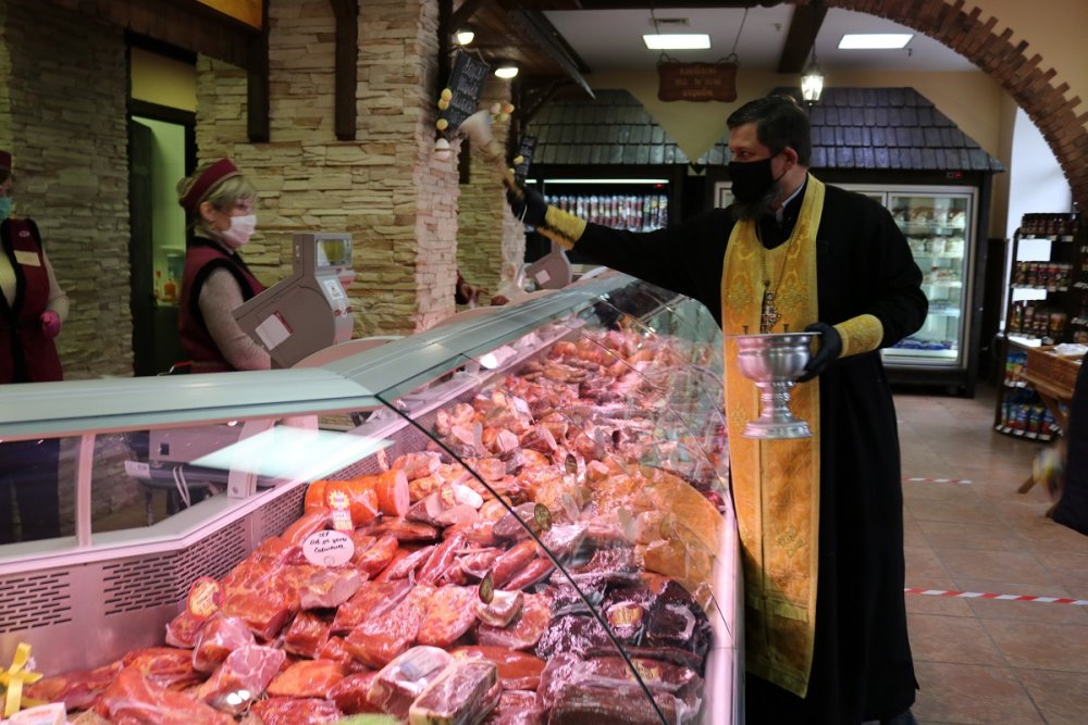 Чин освячення пасок на виробництві «Кременчукм’ясо» та всієї продукції в фірмових магазинах «М’ясна Лавка» провів сьогодні секретар Кременчуцької єпархії протоієрей Віктор Капертехов. Священик підкреслив, що православна церква підтримує ініціативу влади, щоб люди не йшли до церкви на Великдень і не наражали себе на небезпеку заразитися коронавірусом.