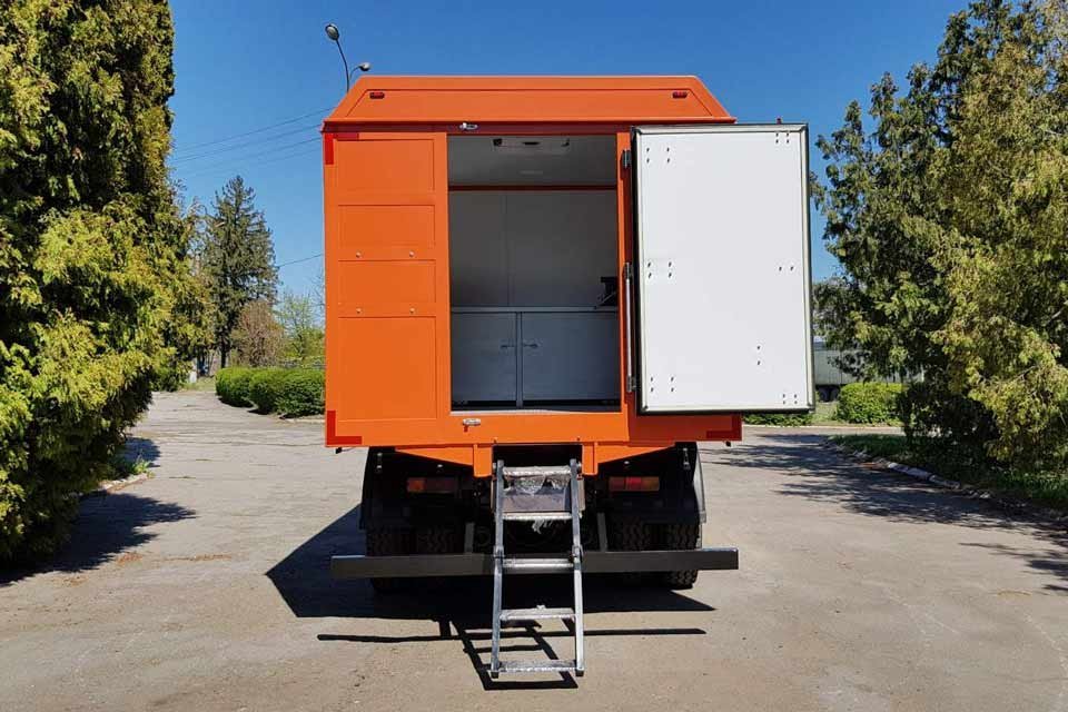 Наявні 2 відсіки – пасажирський для перевезення ремонтної бригади та технологічний для перевезення обладнання та інструменту, а також – проведення технологічних операцій з ремонту.