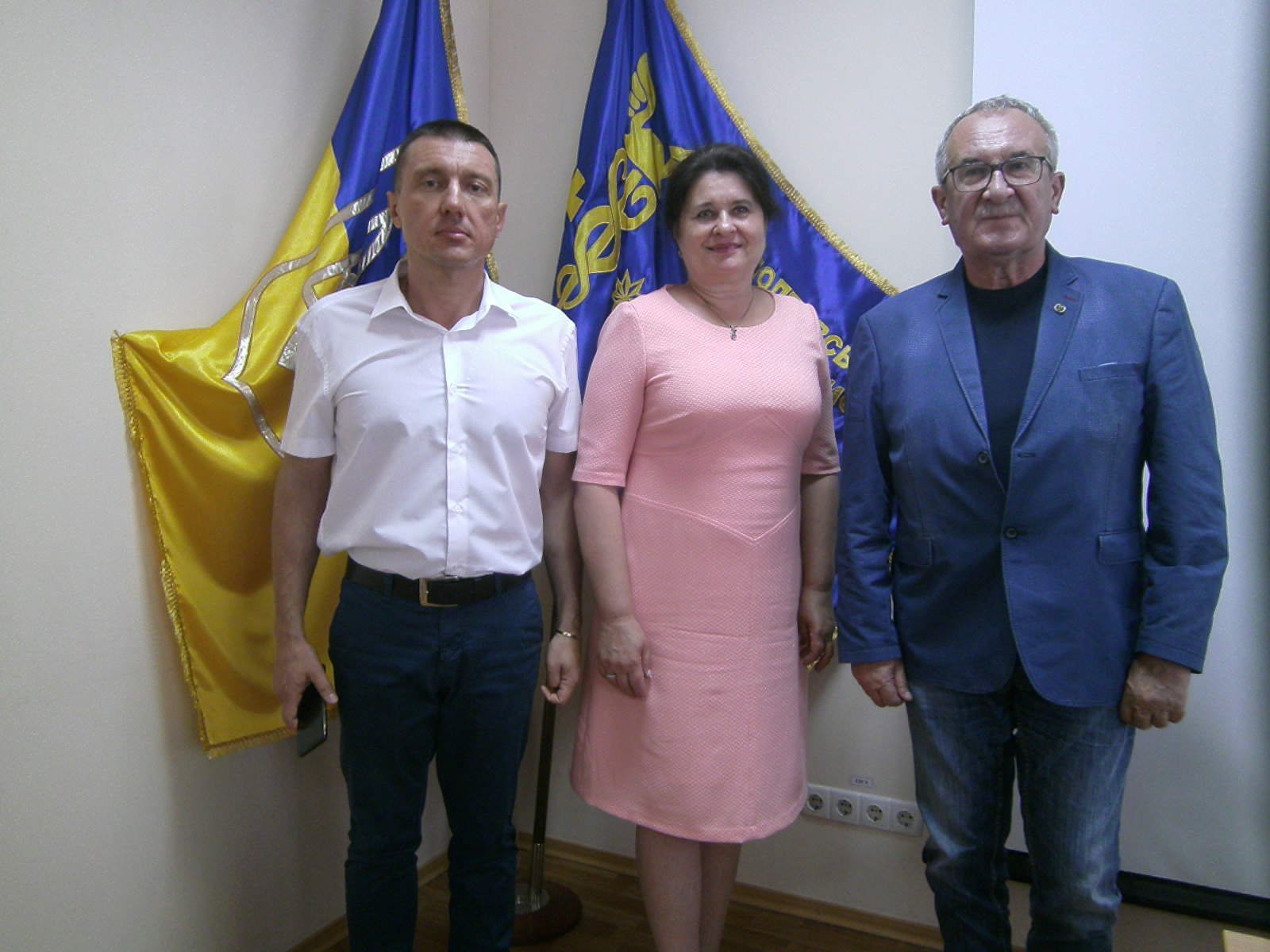 Зліва направо: віце-президент Полтавської ТПП Володимир Борисенко, начальник відділу інновацій та розвитку ПТПП Валентина Вождаєнко, президент ПТПП Володимир Олійник