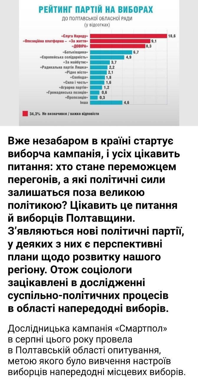 Сьогодні у ряді ЗМІ Полтавщини на правах реклами з’явилася публікація про результати соціологічного дослідження суспільно-політичних настроїв мешканців області. Цифри, представлені у ній, викликали відверте здивування — наприклад політичній партії “Сила і честь” у цьому опитуванні намалювали менше 2 відсотків, хоча останні дослідження провідних Всеукраїнських компаній свідчать про щонайменше 7 відсотків суспільної підтримки.