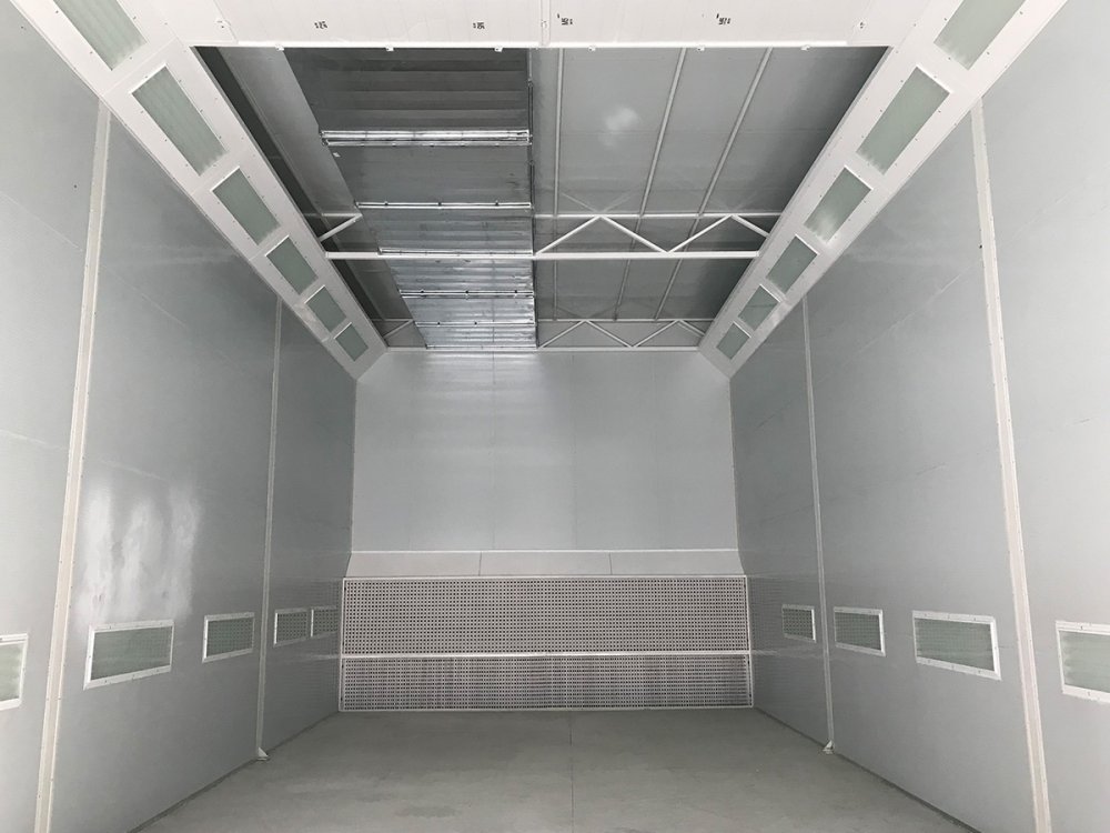 - повністю герметичної й теплоізоляційної кабіни, в якій є: пожежобезпечні й вологостійкі стіни й покриття стелі (витримують підвищення температури до 180 градусів), підвісна стеля з повітрефільтром, ворота, сервісні двері, волого- і пилозахищені світильники;