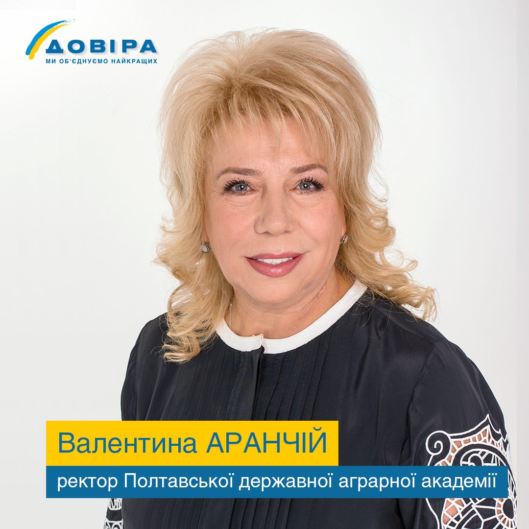 Ректорка Полтавської державної аграрної академії, професорка і заслужена діячка науки і техніки України Валентина Аранчій приєдналася до команди «ДОВІРА».
