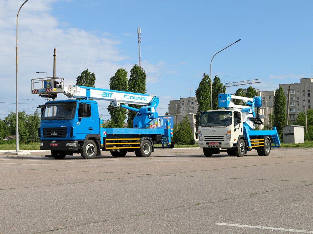 Відвантажені автовишки здатні ефективно виконати будь-які ремонтні роботи на висоті – 24-28 метрів відповідно.