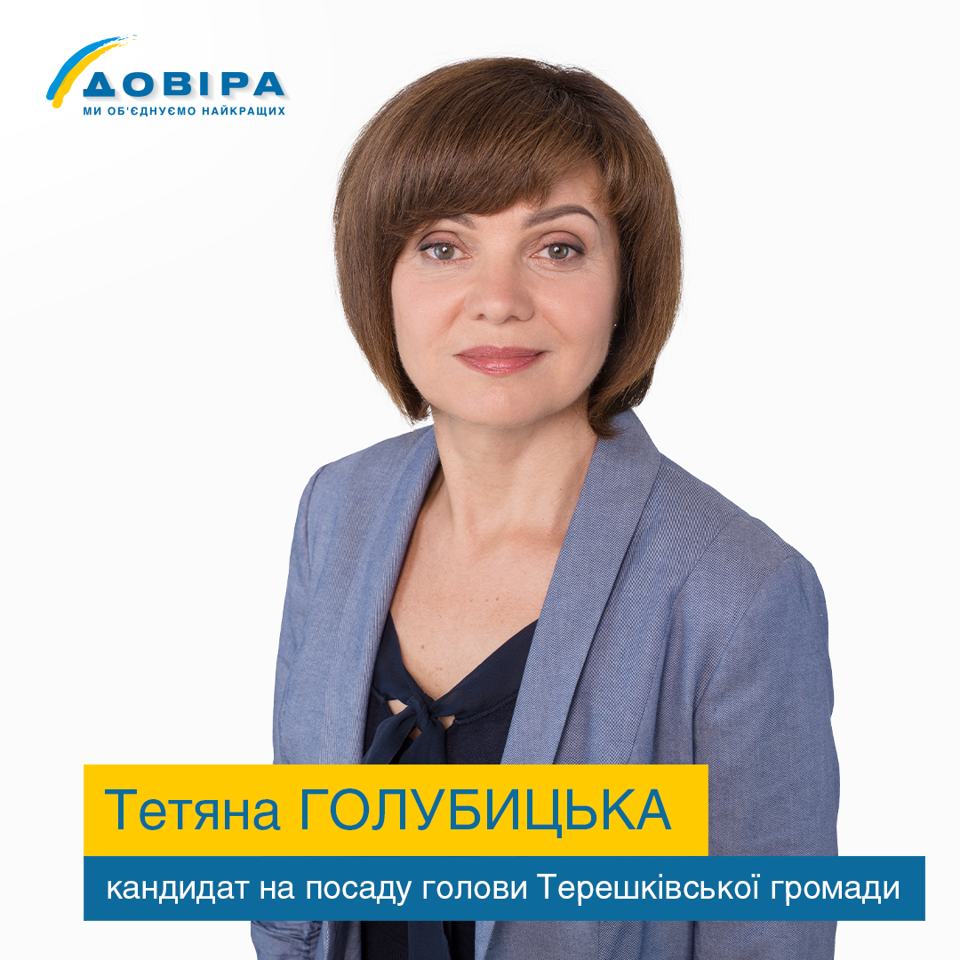 Жити у красивому і заможному краї – мета кандидата на посаду голови Терешківської громади Тетяни Голубицької, яка також приєдналася до команди «ДОВІРИ».