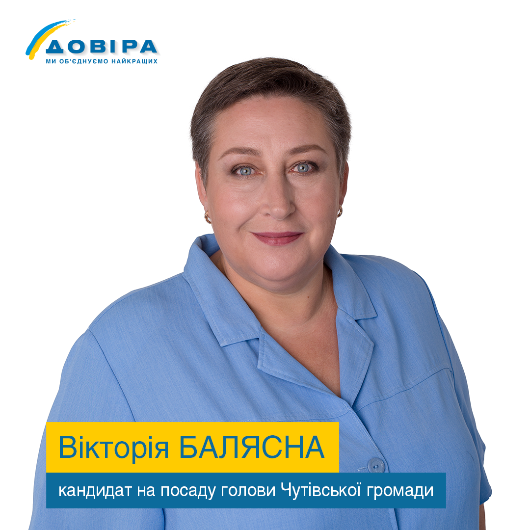 Також до команди «ДОВІРИ» приєдналася справжній управлінець Вікторія Балясна. Народжена в Чутовому, вона все життя працювала задля розвитку освіти і культури у її рідній громаді.