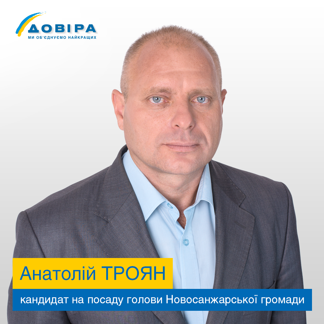 Анатолій Григорович – юрист і економіст за освітою, має чималий досвід роботи в органах місцевого самоврядування. У 2013 році його вперше обрали головою Старосанжарської ради. У 2017-му, завдяки майже стовідсотковій підтримці місцевих мешканців, Анатолій Троян очолив Малоперещепинську громаду. Нині ж розраховує на підтримку мешканців усієї Новосанжарщини і формує план першочергових кроків.
