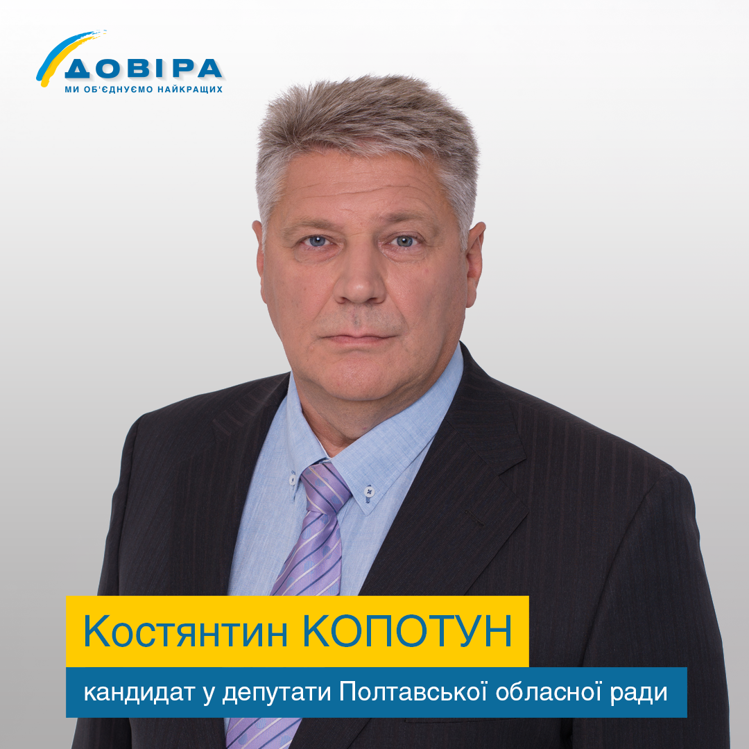 «У «ДОВІРІ» зовсім інший підхід до відбору і формування депутатського корпусу – реальні успішні лідери, які можуть вивести непросту політичну ситуацію в Полтавській області на новий рівень ефективної взаємодії! Для мене великий мотив приєднатися до «ДОВІРИ» – особистий авторитет Олега Кулініча і авторитет людей, яких він до себе запросив у команду. Мені цікаво працювати разом з такою потужною командою «ДОВІРИ», бо якісні зміни ми зможемо зробити лише разом. Тому я впевнений в перемозі «ДОВІРИ» на місцевих виборах!» – зауважив Костянтин Копотун.