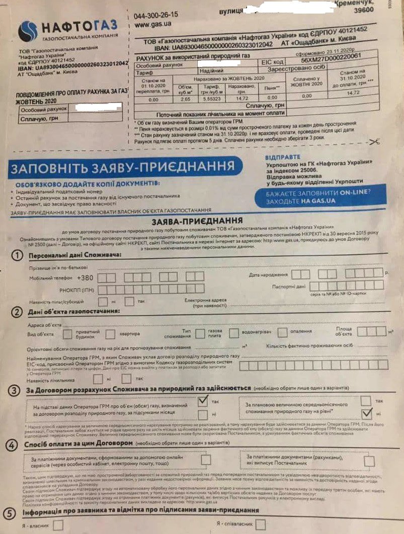 Замість того, щоб надіслати просто рахунок, "Нафтогаз" прикріпив до нього свою рекламу.
