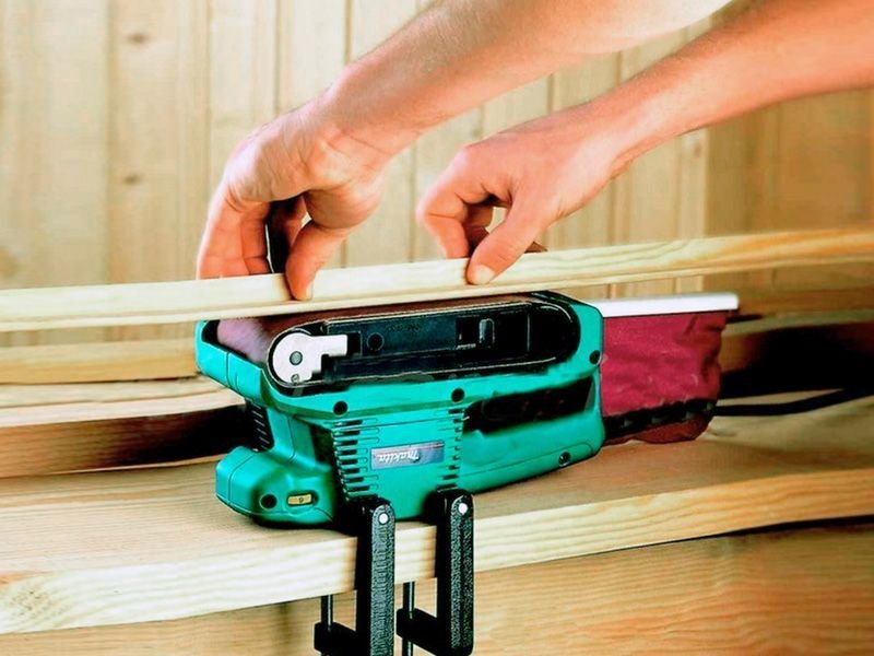 Ексцентрикова шліфувальна або стрічкова шліфувальна машина – відмінні інструменти для шліфування дощок (як будь-який шліфувальний станок та гриндер). Але при роботі з ними можуть виникнути деякі незручності – безконтрольний рух дошки при обробці. Щоб цього не трапилось, зафіксуйте стоп-блок такої ж товщини, як дошка на робочому місці, це застереже від безконтрольного руху.