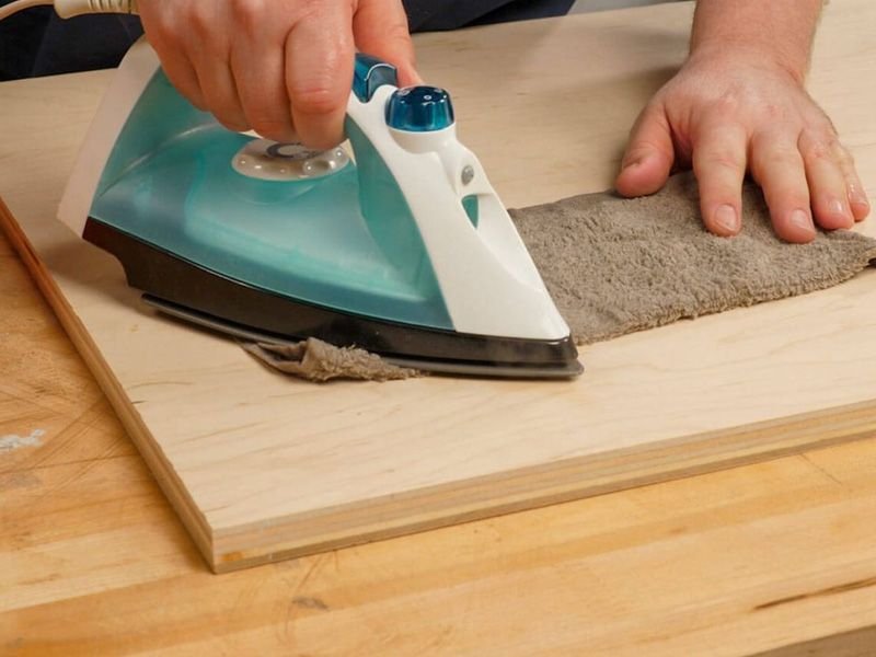 1. Вм’ятина може понівечити ваш виріб або знизити його якість, проте є спосіб, який може цьому завадити. Вам потрібна побутова праска і волога ганчірка. Додайте пару крапель води на вм’ятину та дайте їм вбратися протягом хвилини. Покладіть вологу тканину на пошкоджене місце та розмістіть на ній гарячу праску. Вода нагріється, почне випаровуватися, волокна деревини набухнуть і повернуться у первісний стан.