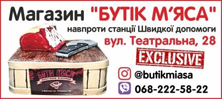- М’ясні страви, приготовані з птиці, кролика, свинини або баранини. Великий асортимент свіжого м’яса та напівфабрикатів можна придбати у магазині «Бутік м’яса», який знаходиться біля Центрального ринку, навпроти станції швидкої допомоги. Смачнющі ковбаски, різноманітні рулети, реберця, маринований шашлик, фарширована качка з яблуками, курочка без кості та інші смаколики. Є власна коптильня. Все свіженьке та приготоване з любов’ю.