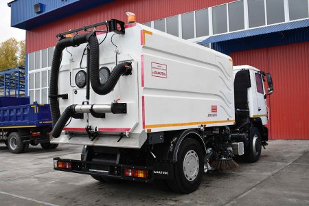 Вакуумно-підмітальна машина АТ МВП-0103 зі щедрою стандартною комплектацією та надійною системою пилоподавлення зможе прибирати поверхню шириною від 2400 до 3400 мм. Техніка має три щітки, бак для води об’ємом 1,8 куб.м, та основний кузов з об’ємом 7,5 куб. м. Потужність автономного двигуна становить 115 к.с.