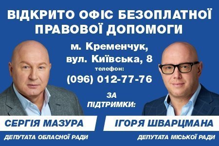 – «Офіс безоплатної правової допомоги» – це умовна назва першого і точно не останнього соціального проєкту для кременчужан, який створено за ініціативи та підтримки Сергія Мазура та Ігоря Шварцмана. У приймальні депутатів кожен, хто потребує первинної правової допомоги, може її безкоштовно отримати.