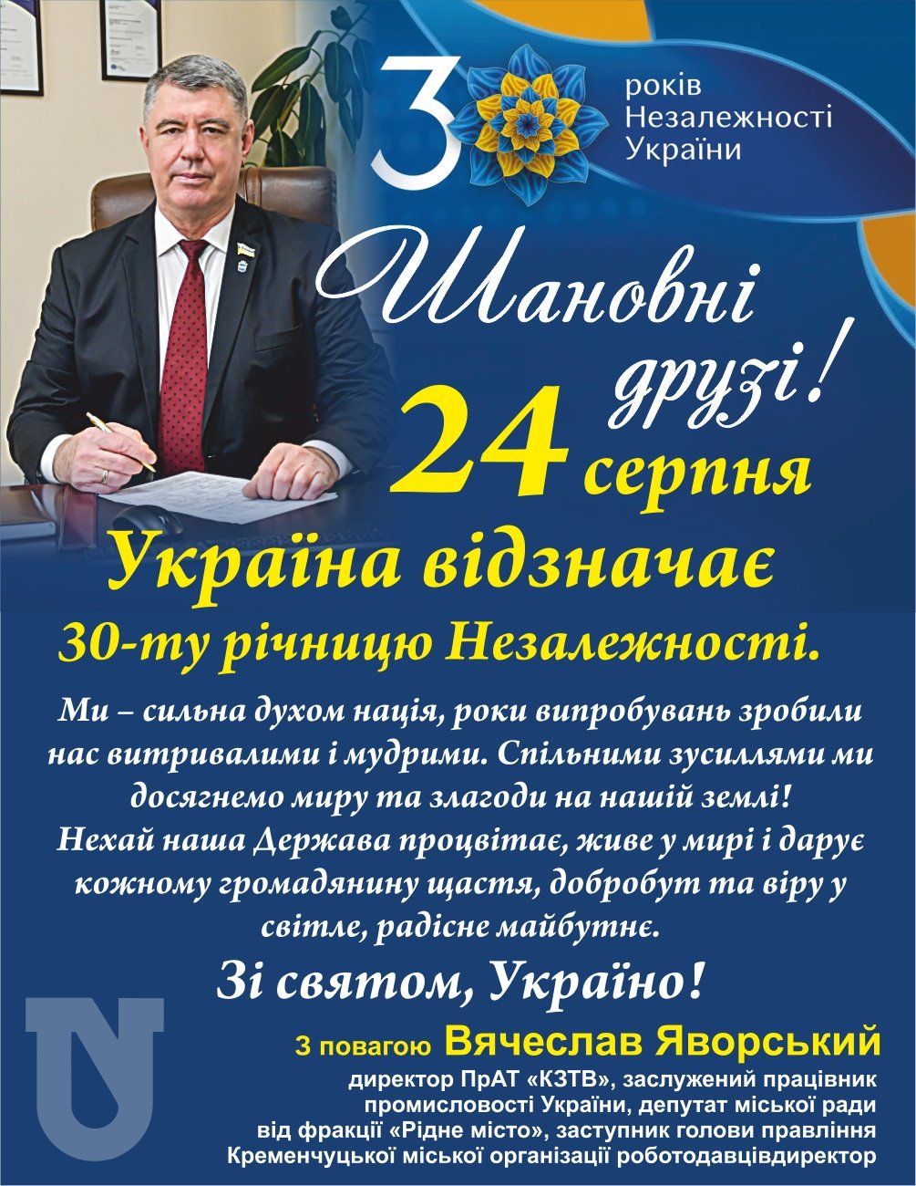 24 серпня Україна відзначає 30-ту річницю Незалежності.