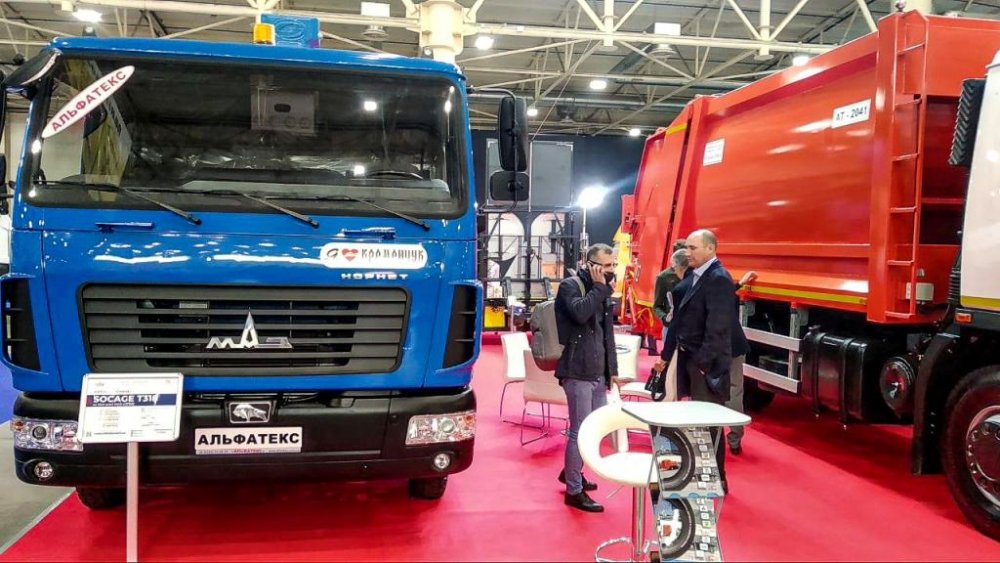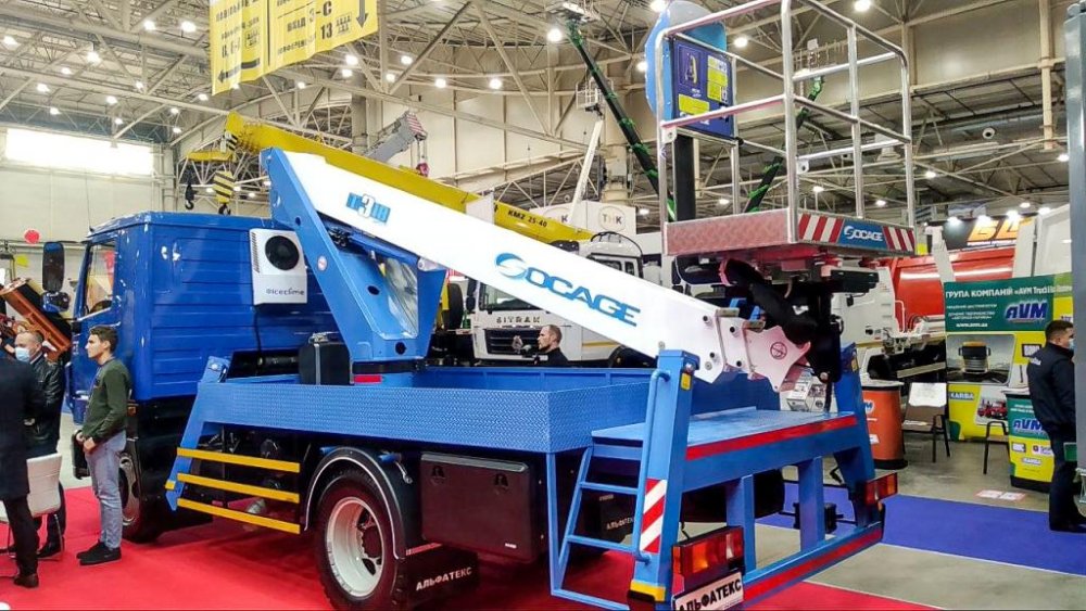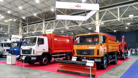 На стенді були представлені автовишки, сміттєвози, машина дорожня комбінована, самоскид тощо: