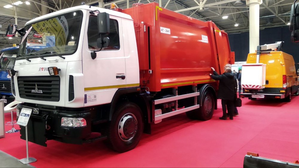 1. Один з найпопулярніших сміттєвозів із заднім завантаженням АТ-2041 на функціональному шасі МАЗ-5340С2 з об'ємом бункеру 18,5 куб.м. Маса завантажуваних ТПВ становить 7200 кг. Коефіцієнт ущільнення відходів досягає 7:1.