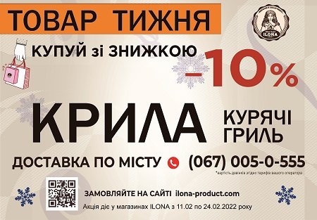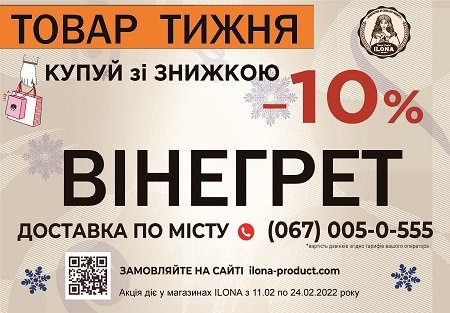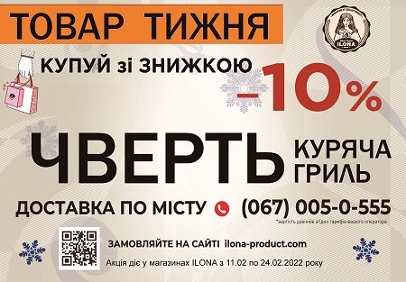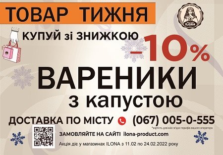 З 11.02.2022 по 24.02.2022 у магазинах ILONA діє акція "ТОВАР ТИЖНЯ".