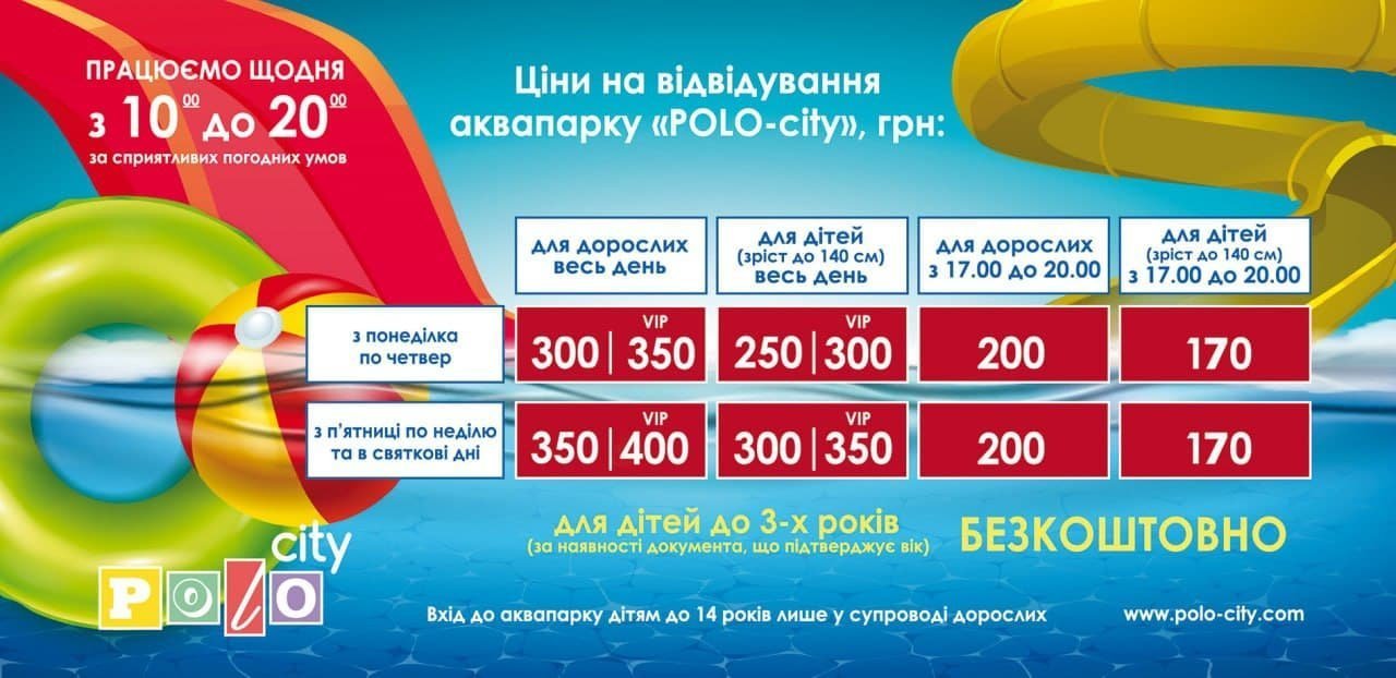 Ось уже 7 років Аквапарк POLO-CITY доводить – якісним може бути відпочинок не тільки за кордоном, Кременчук теж має чим здивувати вибагливих гостей. Для літнього настрою не потрібно чекати на відпустку чи вихідні, бо будь-який день може стати відмінним, коли яскраві враження близько від дому.