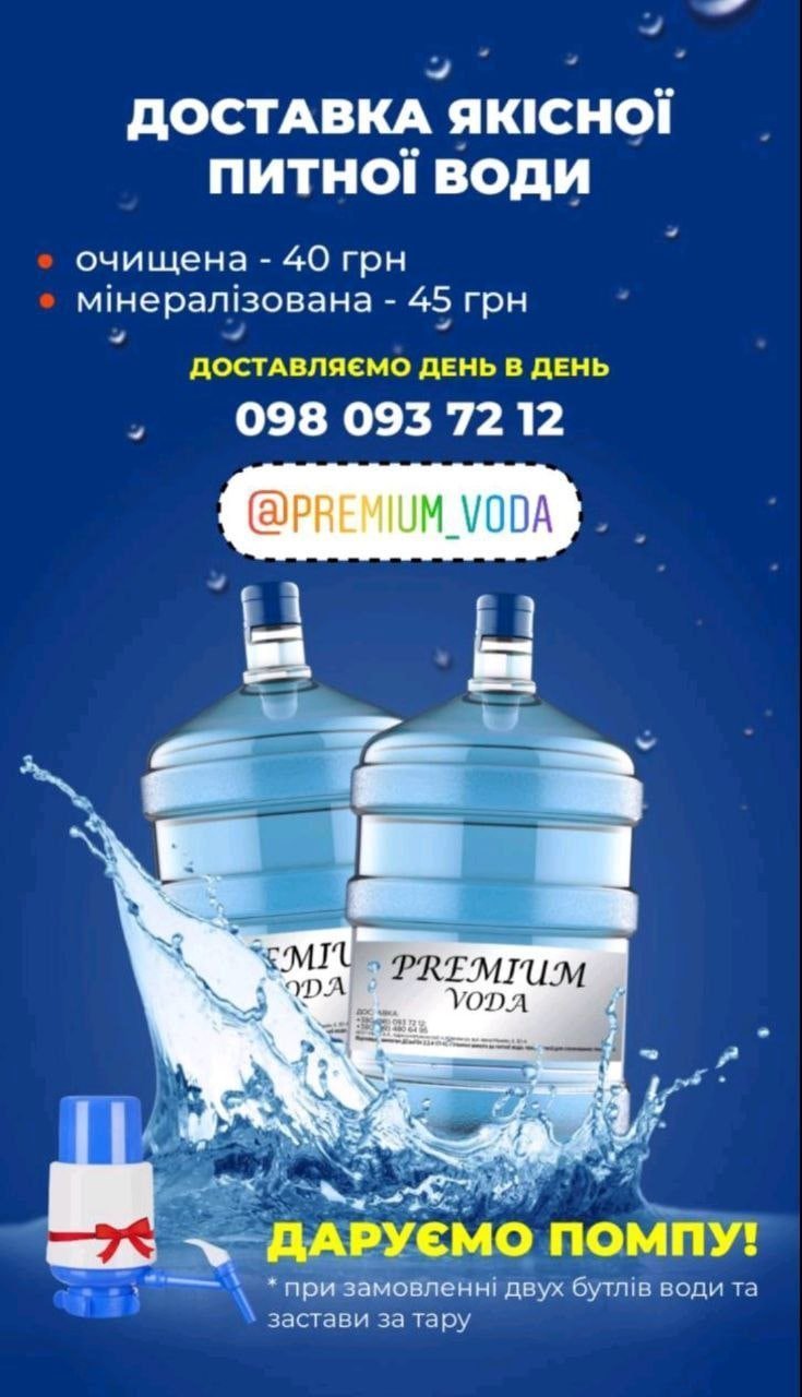 Набір: помпа + бутль – 380 грн. Водичка – безкоштовно.